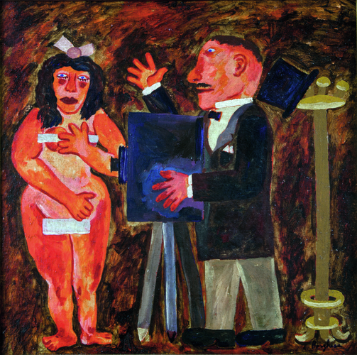FRANZ BORGHESE(ROMA 1941 - ROMA 2005)'Il fotografo e la modella'olio su telacm 50x50firmato in basso a destraal retro: firma + etichetta 'Galleria d'Arte l'Approdo'-BariAutentica su fotografia rilasciata dal MaestroProvenienza: Galleria d'Arte l'Approdo-Bari