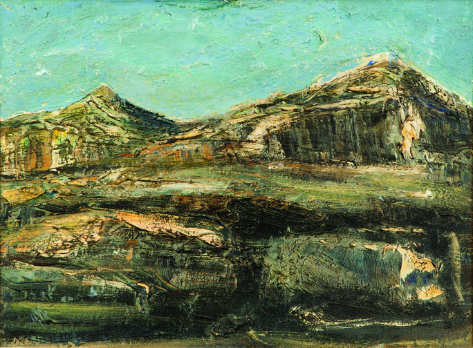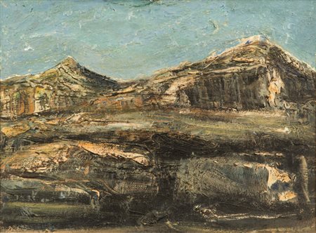 MARIO SIRONI(SASSARI 1885 - MILANO 1961)'Montagne'olio su tavolaanno 1955cm 30x40firmato in basso a destraal retro: timbro Galleria d'Arte Bonaparte-Milano +timbro Galleria d'Arte Moderna Falsetti-Prato +timbro Galleria d'Arte San Giorgio + timbro Galleria Il Traghetto-Venezia con firma Gianni De Marco.Archivio rilasciato dal Sindacato Nazionale Mercanti d'Arte Moderna con repertorio n.534/85/M. firmato dal Dottor Giulio Bergamini in data 1985 + Autentica su foto rilasciata da Farsetti Arte