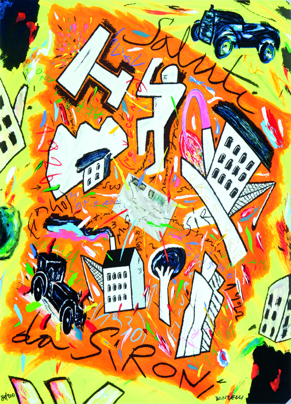 BRUNO DONZELLI(NAPOLI 1941)'Saluti da Sironi'serigrafia su cartaesemplare n. 81/200cm 70x50firmata in basso a destranumerata in basso a sinistra