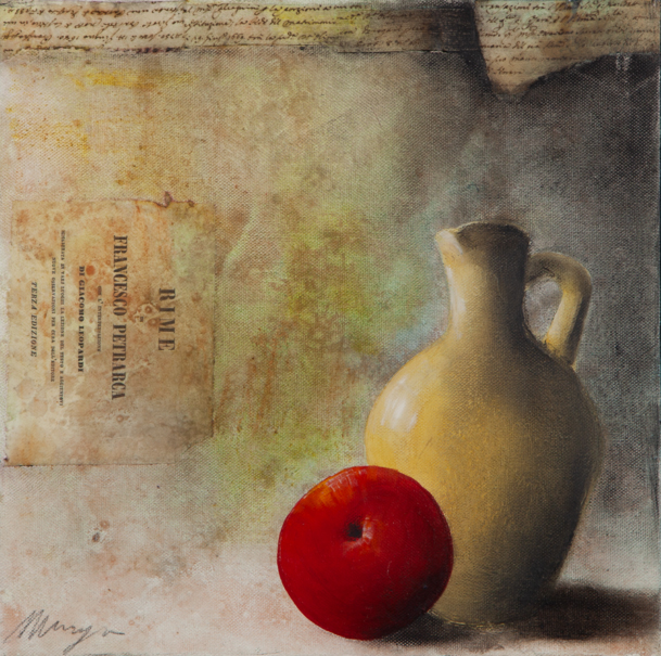 ARTISTA DEL XX SEC.'Rime di Francesco Petrarca'olio su telacm 30x30firmato in basso a sinistra e al retro