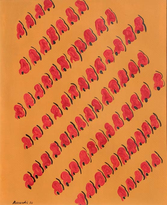 ACCARDI Carla (Trapani 09/10/1924) Senza titolo, 1984 tempera su cartoncino cm. 39.5 X 32.5 Firma, data 'Accardi, 84' (in basso a sinistra) Autentica dello Studio Accardi, con n° 68/16, con firma dell'artista
