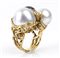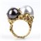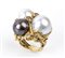 oro giallo 18k, con 2 perle Australiane ed 1 perla Tahiti, contornate da diamanti taglio brillante 0,60 ct circa, H, VS-SI e diamanti brown 0,65 ct circa. Diametro perle australiane 17-17,5 mm e 13,5-14 mm; diametro perla Tahiti 13-13,5 mm. Dimensione fronte 30 x 30 mm. Peso 42,7 gr. Misura IT 17,5 - Misura US 8. Stato di conservazione: ***** eccellente.