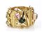 oro giallo, bianco e rosa 18k, a fascia traforata con motivi geometrici, incastonato con gemme di colore (ametiste, peridoti, quarzi verdi tormaline) e diamanti taglio brillante 0,50 ct circa, G, VS. Firmato e datato "GIORGIO FACCHINI 2018 P.V." e punzonato "750". Nato a Fano nel 1947, Giorgio Facchini ha iniziato la sua formazione artistica presso uno zio orafo e lo scultore Edgardo Mannucci. Dopo aver completato gli studi a Venezia ha esordito disegnando gioielli informali, spazialisti e cinetici, che ha presentato alla sua prima mostra alla Galleria Fanesi di Ancona. Nei decenni successivi ha esposto gioielli, medaglie e sculture in numerose mostre collettive e personali in Italia e all’estero, dove ha ottenuto prestigiosi riconoscimenti. Ha collaborato con Pierre Cardin, Il Festival dei Due Mondi di Spoleto e ha insegnato discipline plastiche all’Accademia di Belle Arti di Macerata e all’Accademia di Brera di Milano. Larghezza 55 mm. Diametro interno 60 mm. Peso 282 gr. Stato di conservazione: ***** eccellente.