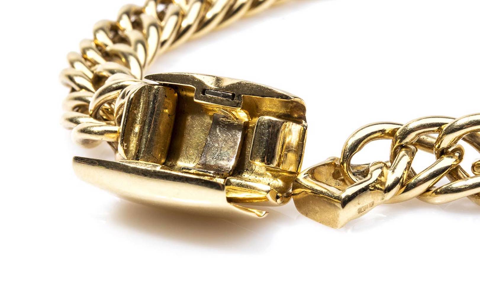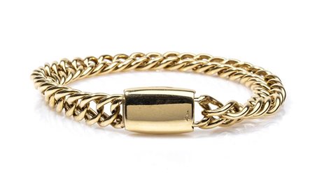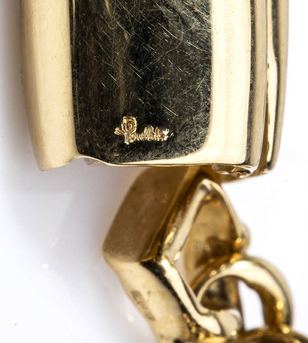 bracciale vintage in oro giallo 18k. Punzonato "750", "Pomellato" e "468 MI". Lunghezza 20 cm, larghezza 1,1 cm. Peso 46,1 gr. Stato di conservazione: ***** eccellente.