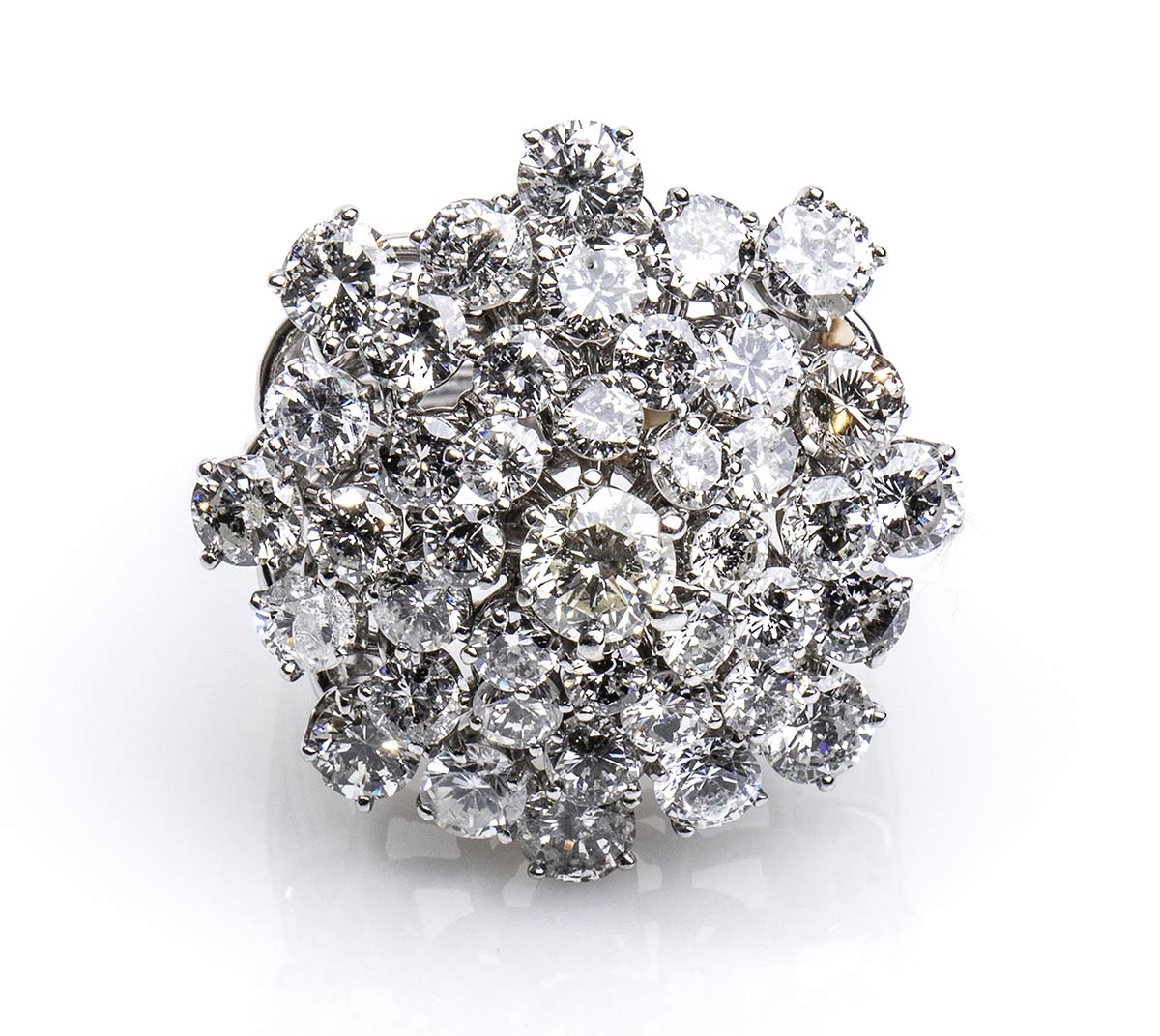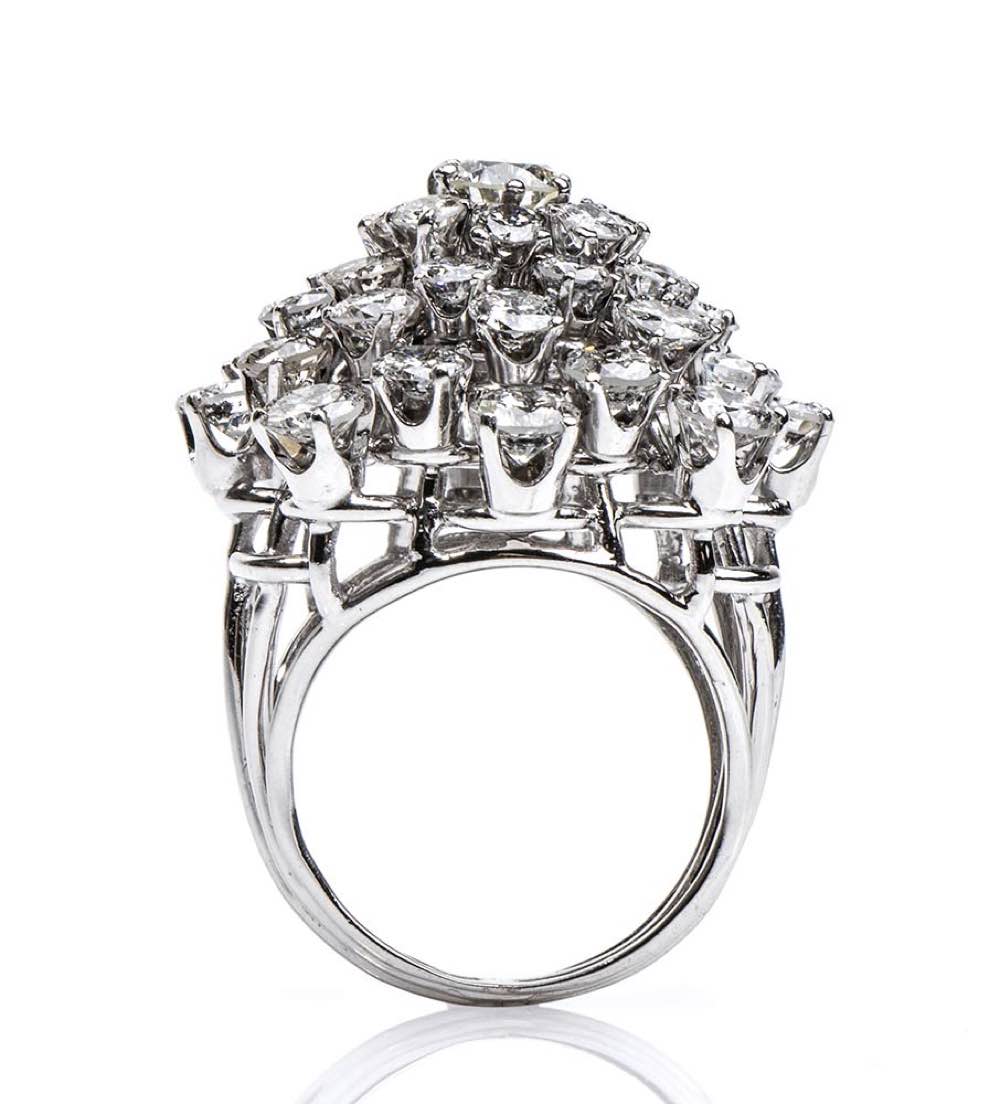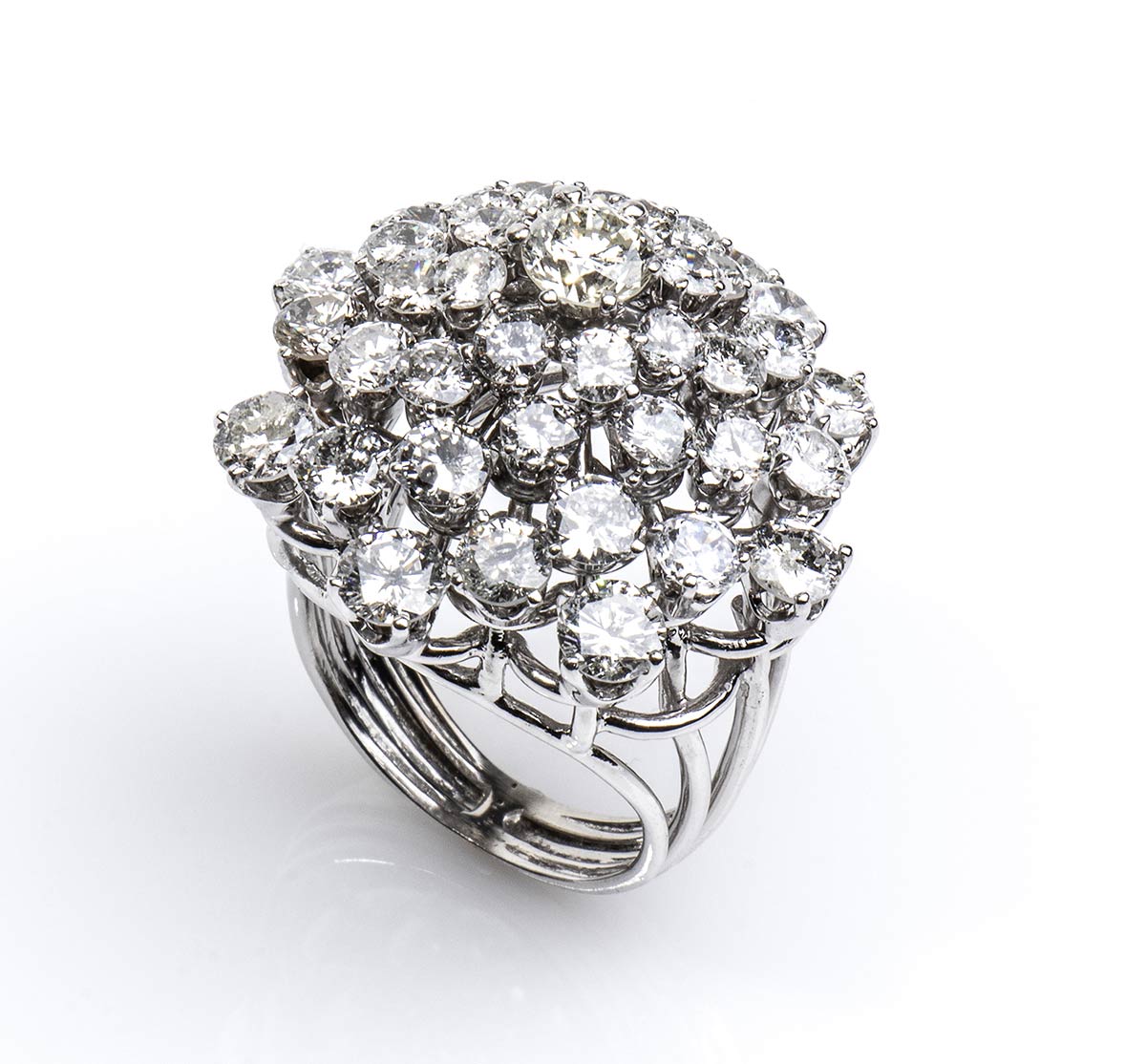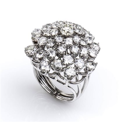 oro bianco 18k con diamanti taglio brilliante 6,70 ct circa, H-I, SI-P. Dimensioni fronte 27 mm. Misura IT 14 - Misura US 6,5. Peso 13,7 gr. Stato di conservazione: ***** eccellente.