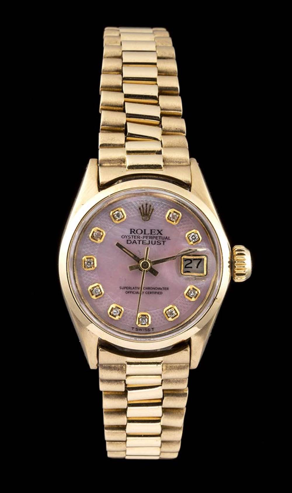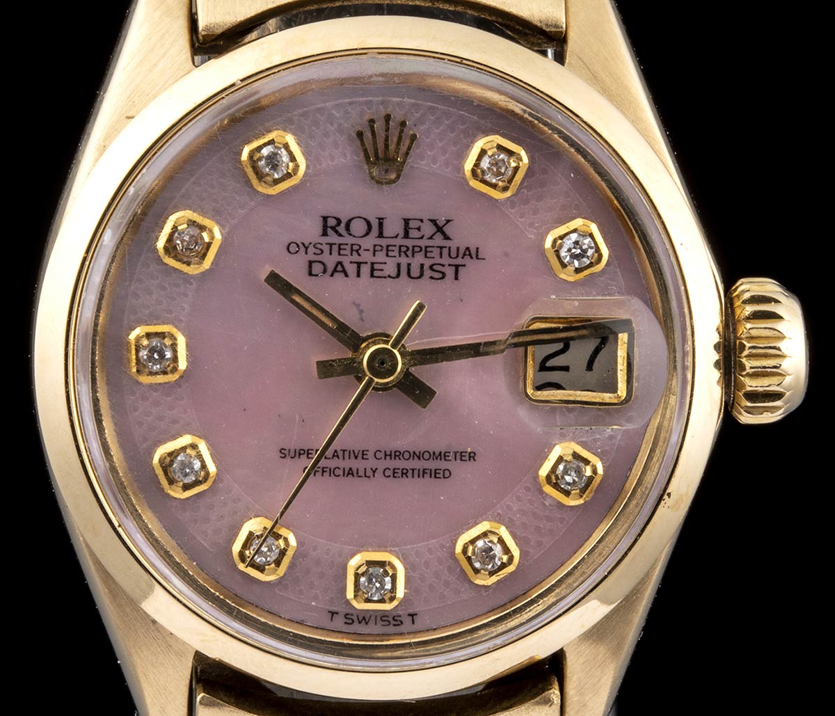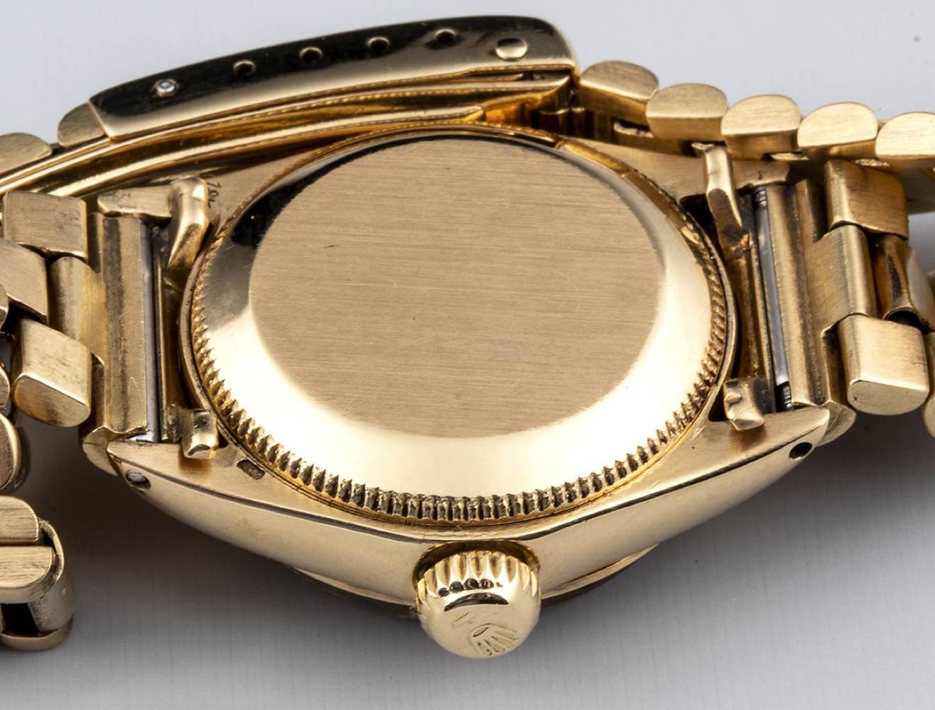 cassa e bracciale President in oro giallo 18k, quadrante in madreperla rosa con diamanti agli indici. Movimento automatico, referenza 6516, anno di produzione 1968/69 ca. Diametro della cassa 26 mm. Stato di conservazione: ***** eccellente.