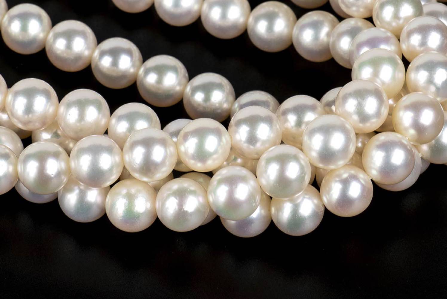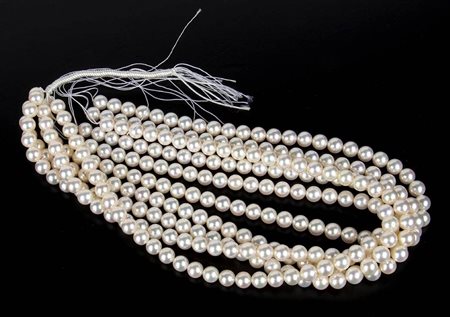 perle coltivate d'acqua salata (giapponesi). Diametro 7,5-8 mm. Lunghezza 40 cm. Stato di conservazione: ***** eccellente.