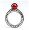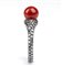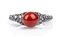 oro bianco 18k, con sfera di corallo Mediterraneo (corallium rubrum) affiancata da pavé di diamanti grigi 1,85 ct circa. Punzonato "750", "4077", "patented". Peso 6,4 gr. Misura IT 17 - Misura US 8. Stato di conservazione: ***** eccellente.