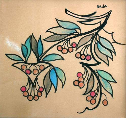 BALLA Giacomo (Torino 18/07/1871 - Roma 01/03/1958) Il ramo di ciliegie, 1920 tempera su cartone cm. 68.5 X 70 Firma 'Balla' (in alto a destra) Autentica a cura di Luce Balla