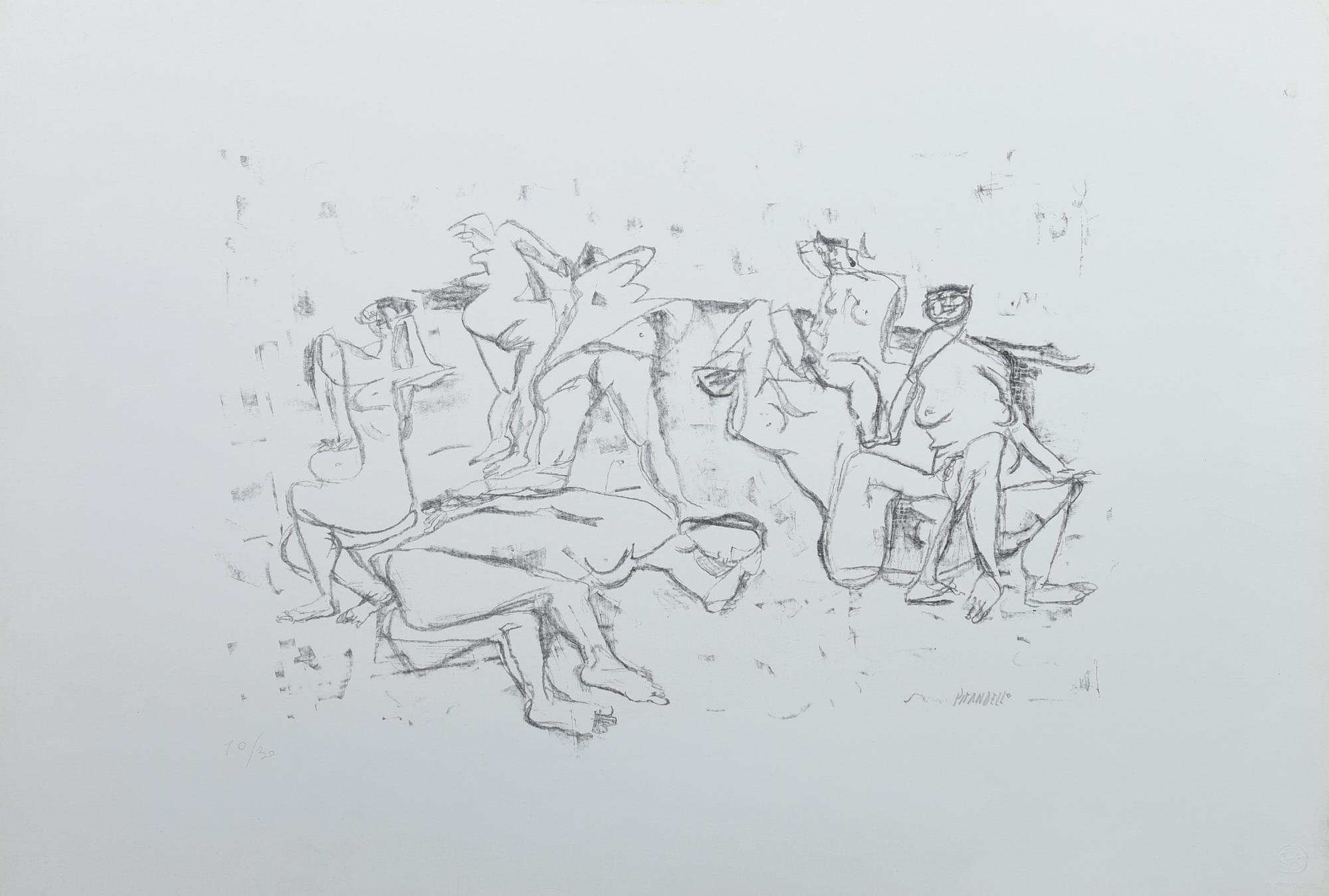 Fausto Pirandello (1899 - 1975) NUDI SULLA SPIAGGIA litografia, cm 50,5x71,5;...