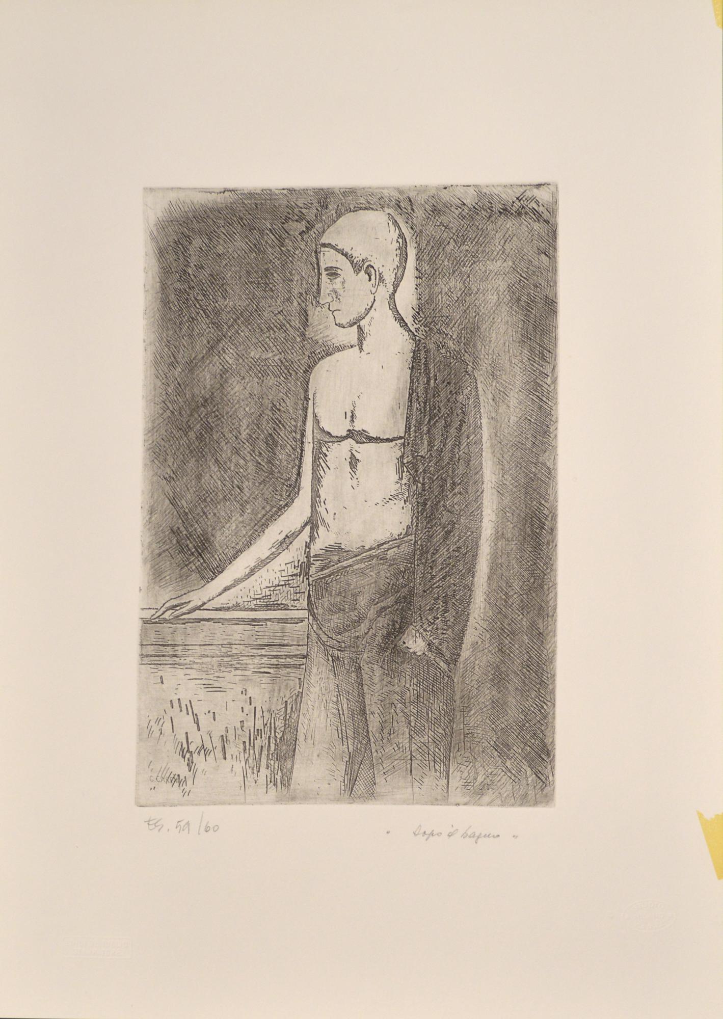 Carlo Carra' (1881 - 1966) DOPO IL BAGNO acquaforte acquatinta, cm 30x20, su...