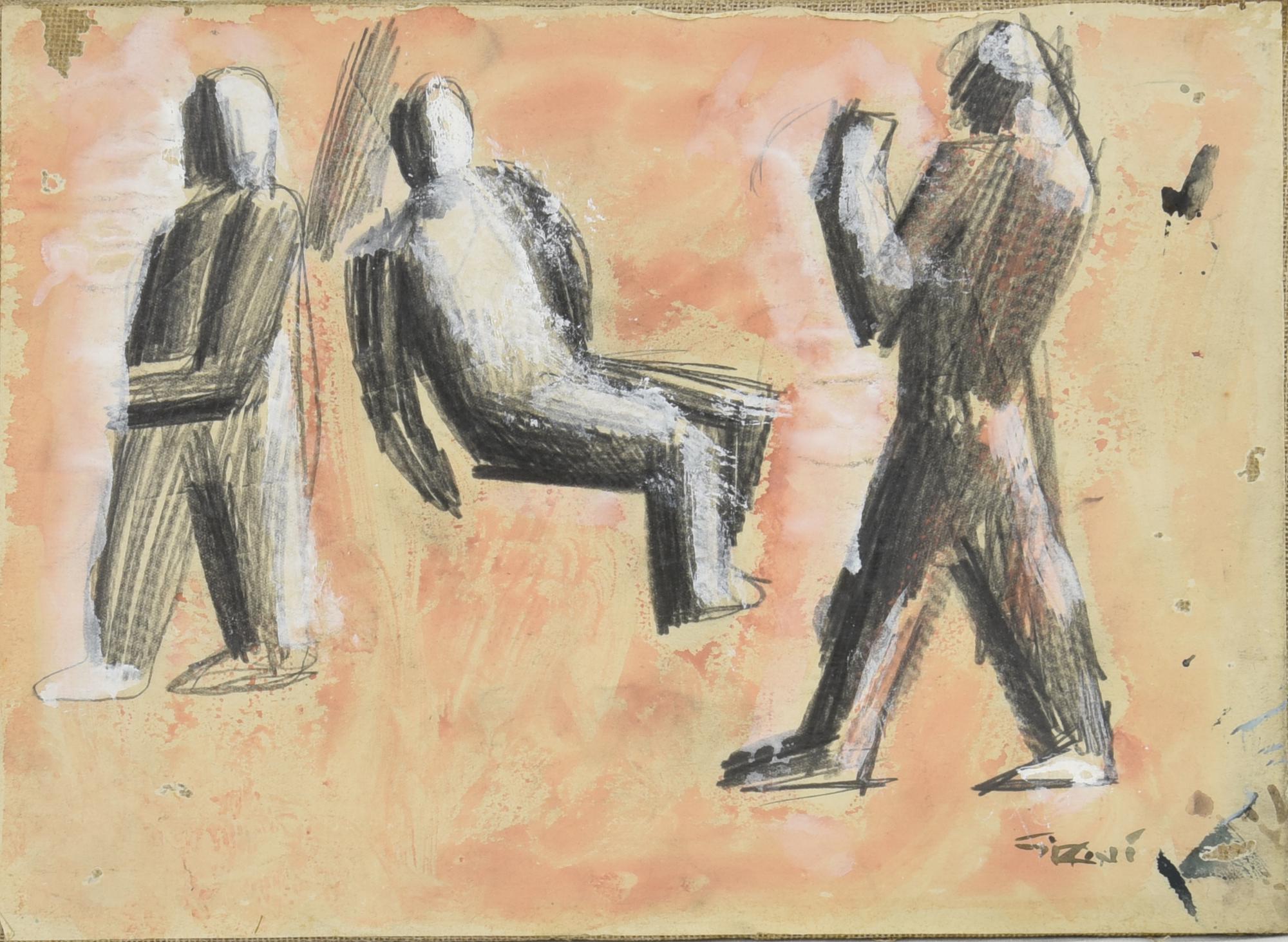 Mario Sironi (1885 - 1961) TRE FIGURE matita grassa, tempera, tempera diluita...