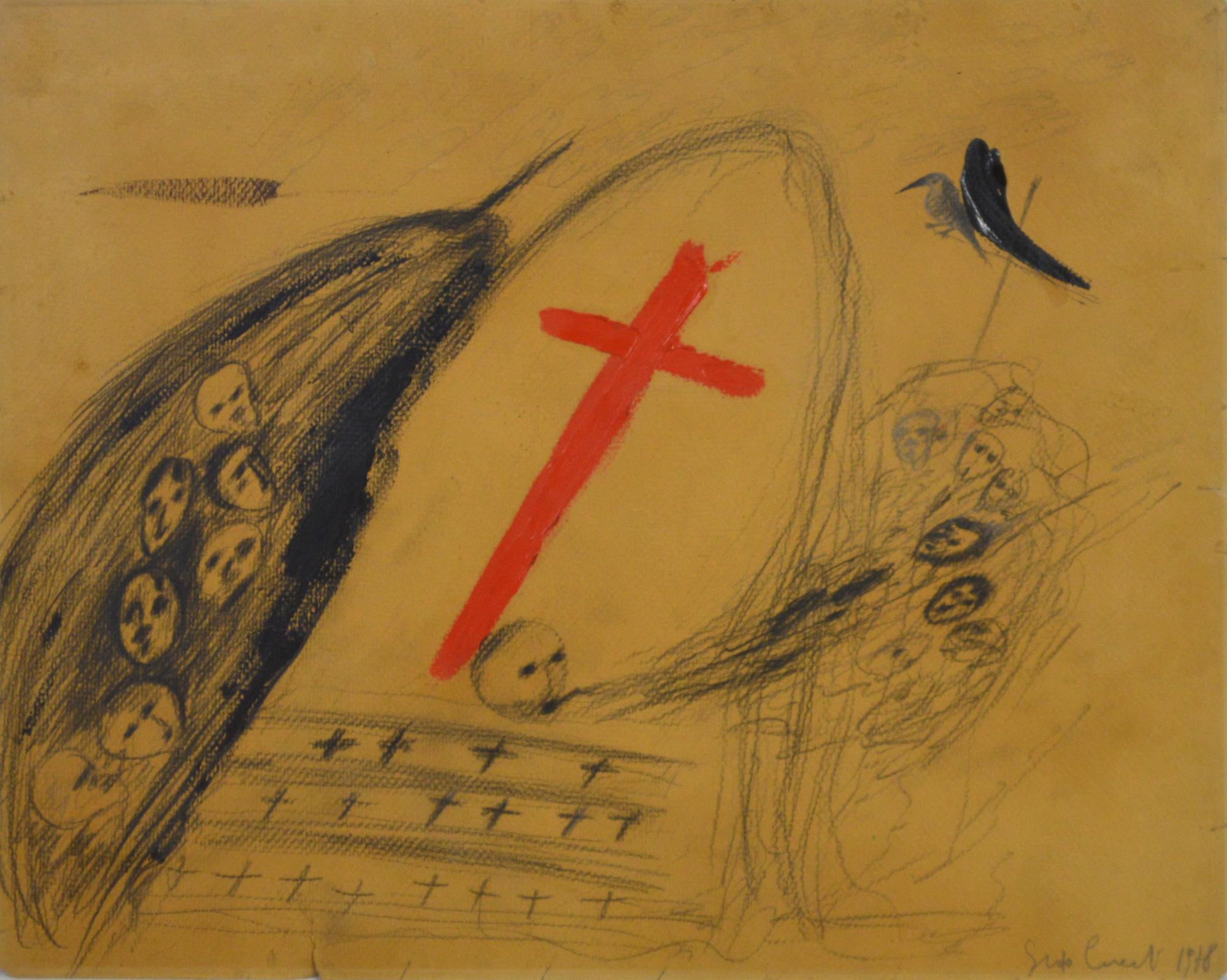 Lotto 179 | Enzo Cucchi (1950) SENZA TITOLO tempera e matita su carta, cm 37x47 firma e...