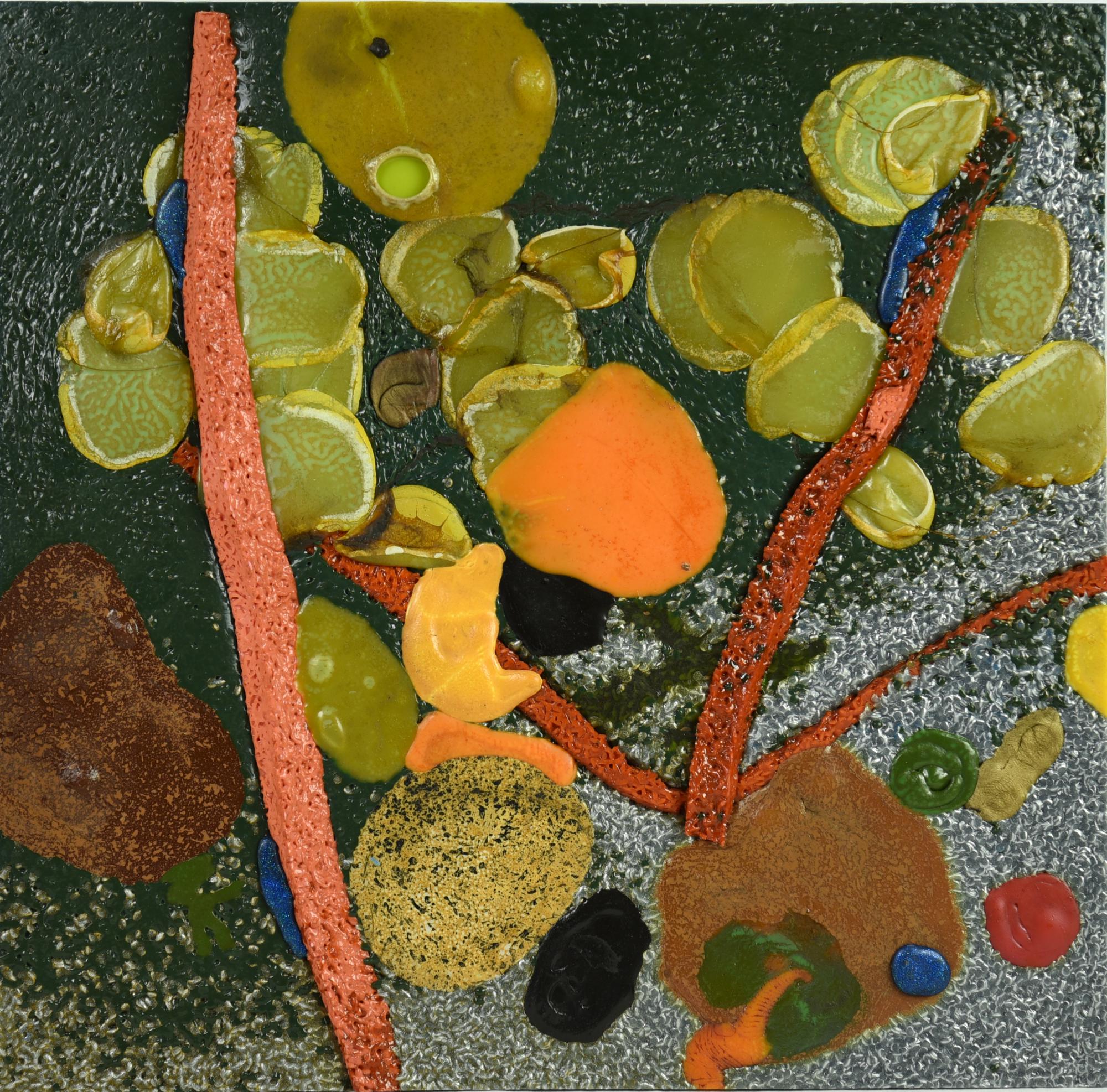 materie plastiche su tavola,cm 45x45,5