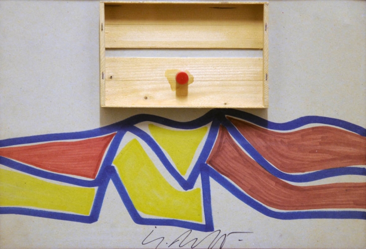 SERGIO DANGELO (1932) Philadelphia , anni 70 Tempera e collage su cartone, cm. 35 x 51 Firmato sul retro Prov. Collezione Privata