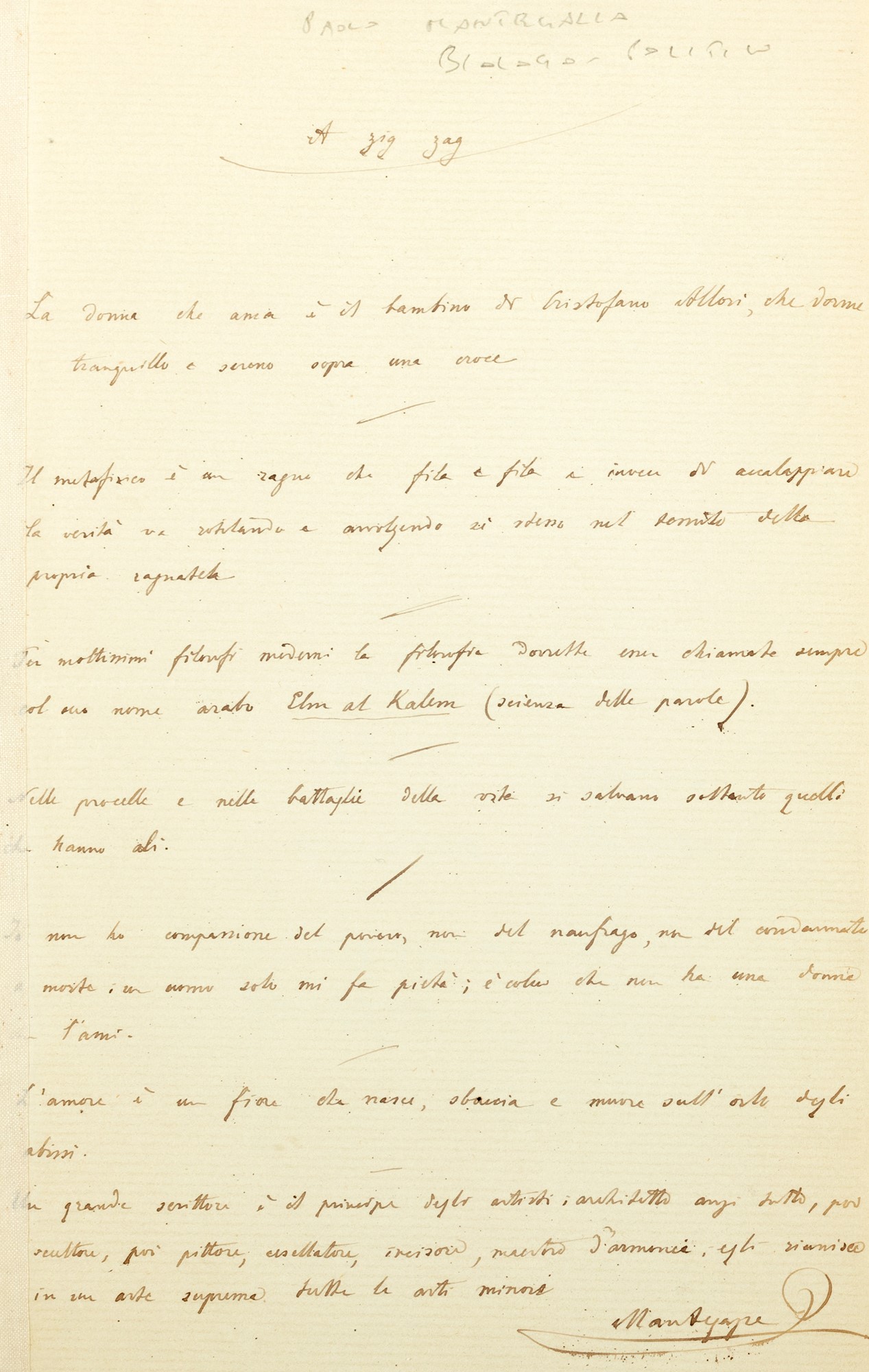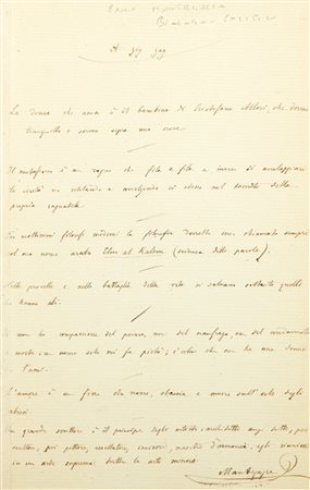 Pagina autografa dal titolo "A zig zag", 210 x 133 mm., con una serie di riflessioni di varia umanità, incollata su cartoncino.