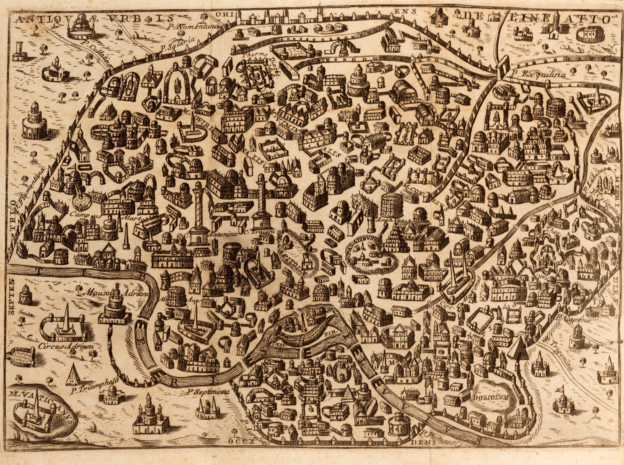 Roma, Giacomo Dragondelli, 1675. In 8°. Frontespizio xilografico incorniciato da struttura architettonica figurata, con 1 tavola a doppia pagina e numerose illustrazioni nel testo, leggera brunitura, sporadiche fioriture, fascicolo D e ultime due carte allentati, legatura coeva in pergamena, lievi difetti.