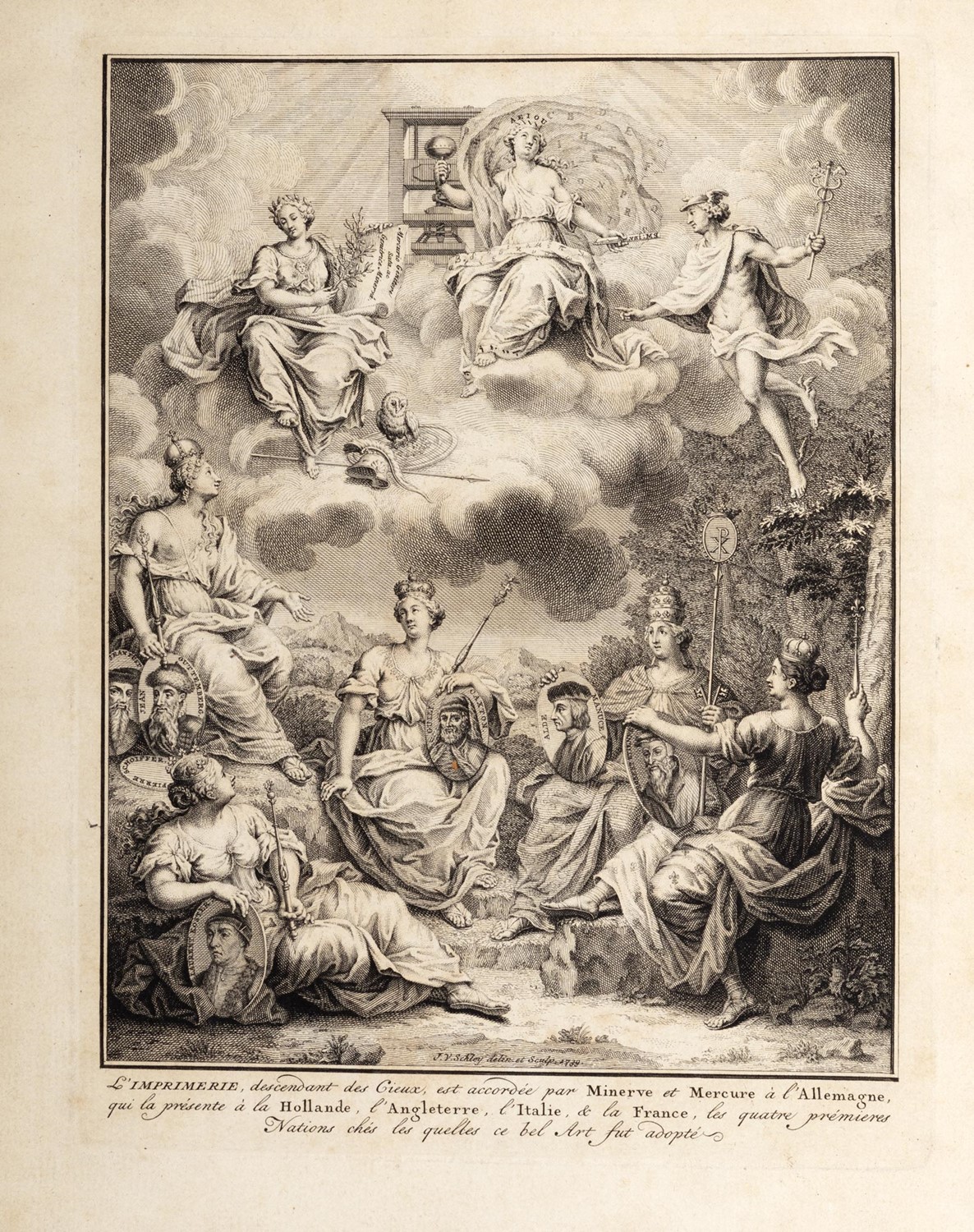 Edizione originale dell’erudito e bibliografo francese, che ebbe notevole successo. Prosper Marchand era un editore e giornalista ugonotto che fuggì dalla Francia nel 1709. L'opera fu stampata nell'anno trecentesimo anniversario dell'invenzione della stampa.