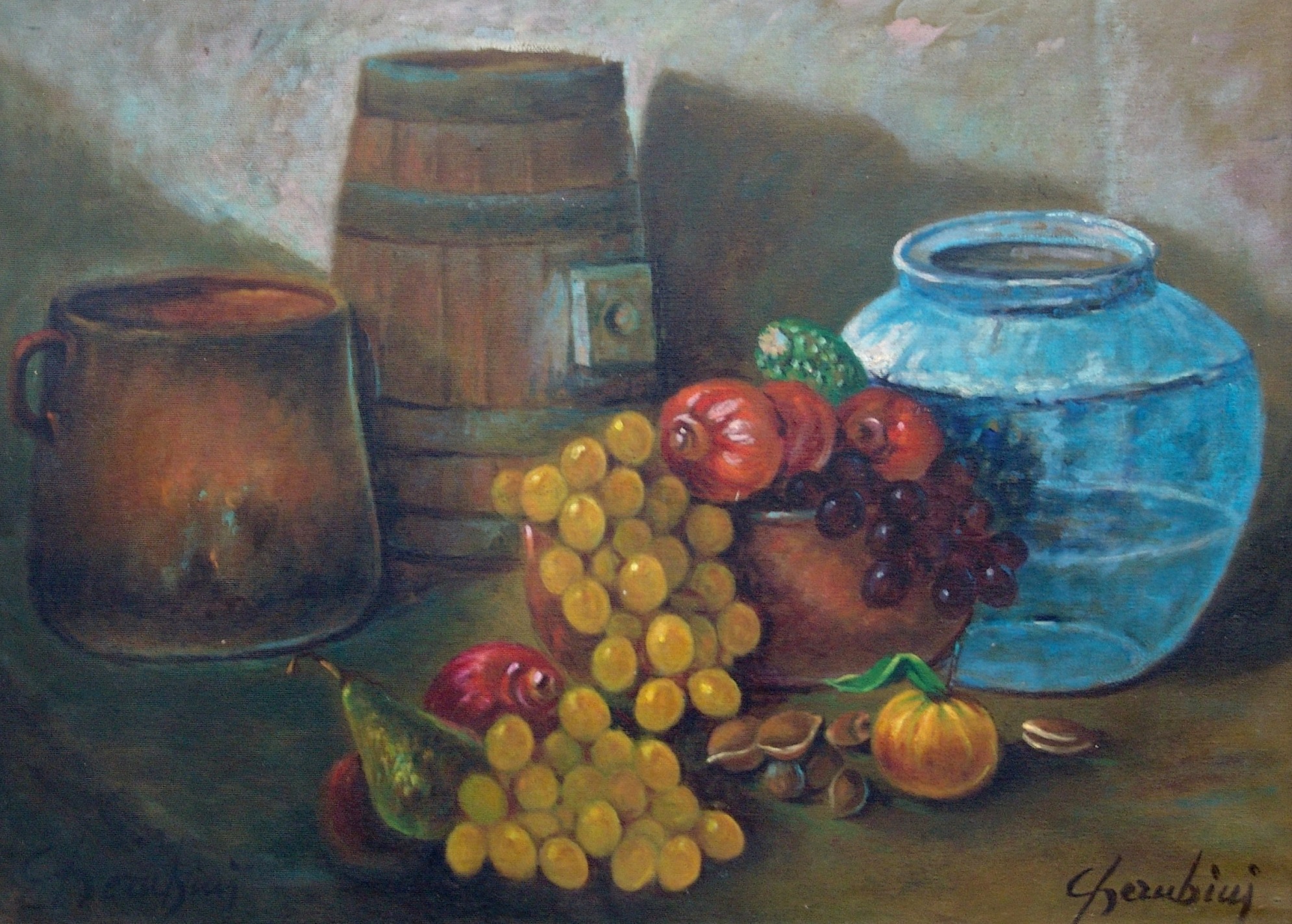 firma dell’artista in basso a destra e in basso a sinistra, opera con cornice