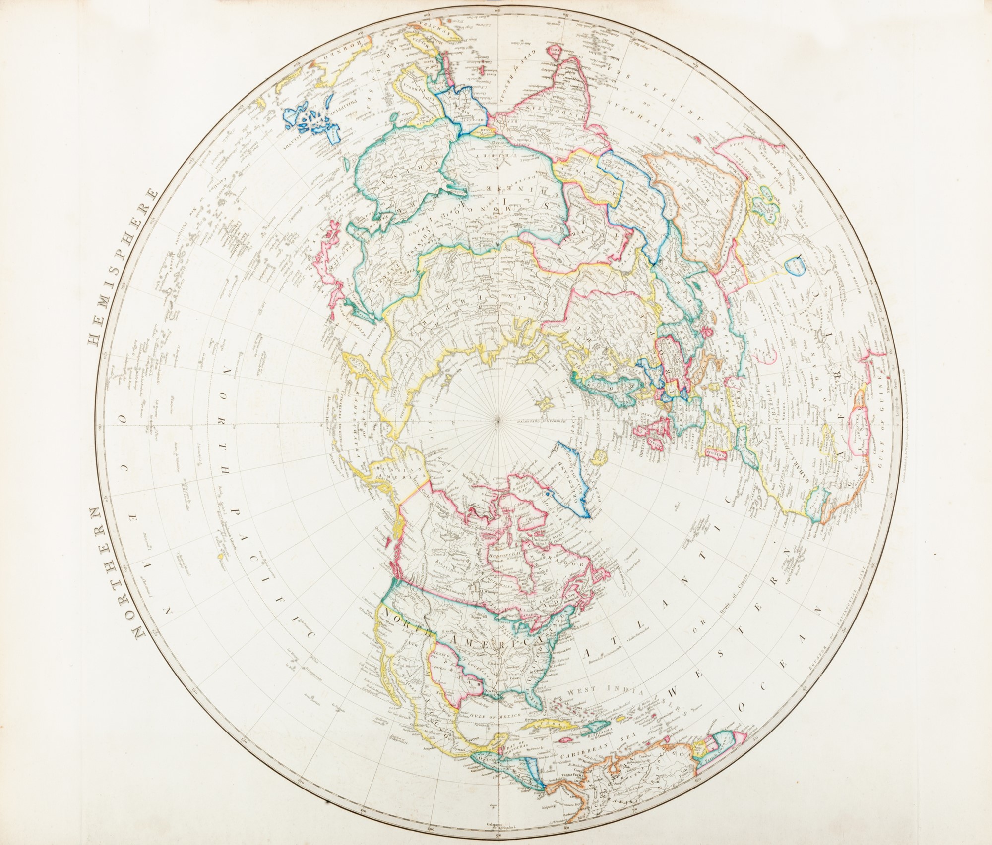 Londra, J. Wyld, s.d. [ ma sec.XIX]. In 2°. Carta di titolo stampata in verde e nero con lo stemma reale del Regno Unito, carta con la lista delle tavole, seguono 68 tavole ma numerate 1 - 64, in più le tavv. 44A, 54A, 60A, 60B, incise in rame e colorate, cornici decorative, diverse mappe a doppia pagina e ripiegate, prime 2 carte foderate e con difetti, mancante la tav. 65, qualche macchia, strappi ad un mappa, ultime 2 mappe con difetti, legatura in mezza pelle verde con al piatto anteriore in oro "ATLAS", difetti.