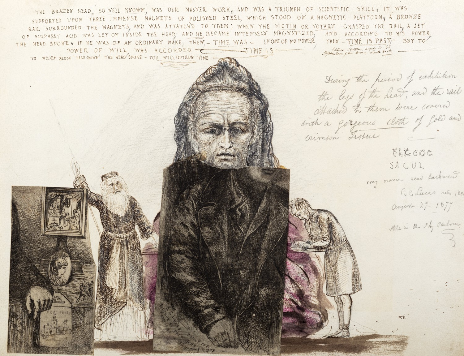 Richard Cockle Lucas (1800-1883) fu un artista eclettico, che lavorò per l’architetto John Nash e nello studio dell’incisore John Flaxman, prima di accedere alla Royal Academy Schools verso il 1825-’30. Realizzò come scultore piccoli ritratti ma anche grandi opere, come la statua di Samuel Johnson a Lichfield (1838) e quella di R.C. Hoare nella Salisbury Cathedral (1841). Negl ianni quaranta del secolo lavorò nel British Museum per realizzare copie di antiche sculture e per costruire due modelli in scala del Partenone. Divenne particolarmente famoso per i suoi modelli in cera, realizzando numerosi ritratti-camei. Nel 1854costruì due Torri a Chilworth vicino Southampton, che attrezzò come casa,studio, galleria e osservatorio. Negli ultimi trent’anni della sua vita, Lucas mise sé stesso al centro della sua arte, concependo opere oniriche frutto di un mix tra idee, inconscio, memoria e occultismo.
