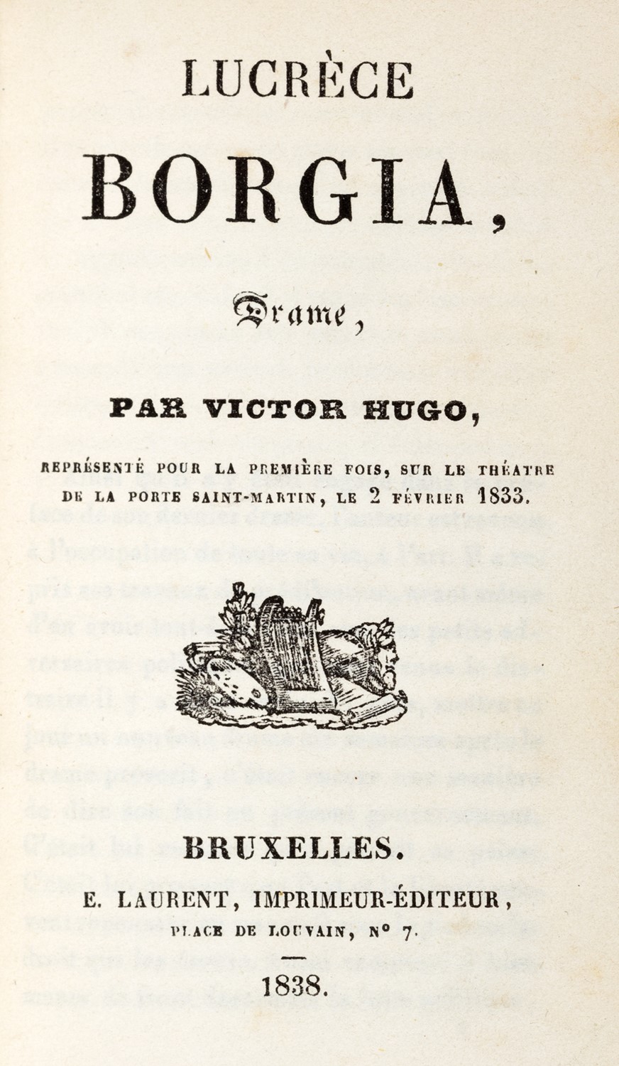 Grazioso libello stampato a Bruxelles del celebre dramma scritto da Hugo nel 1832.