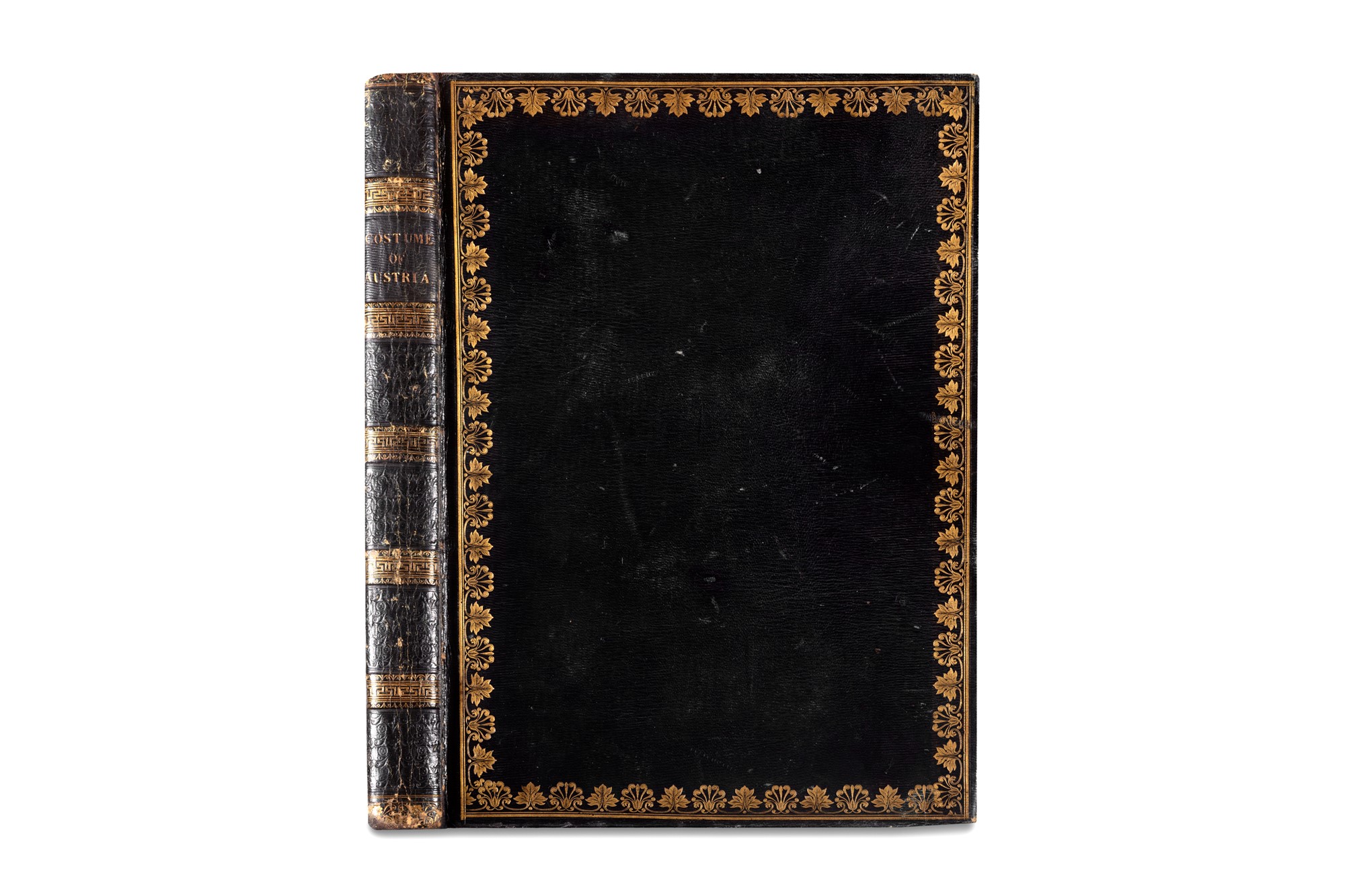 Affascinante libro illustrato in elegante legatura coeva in marocchino.Le tavole raffigurano personaggi popolari in costume: contadini e paesani dell’alta Austria, dell’alta Carniola, della pianura della Moravia, del Tirolo, della Contea di Neutra, ungheresi, bohémiens, ed altri. Abbey Travel 71; Lipperheide 831; Tooley 333.