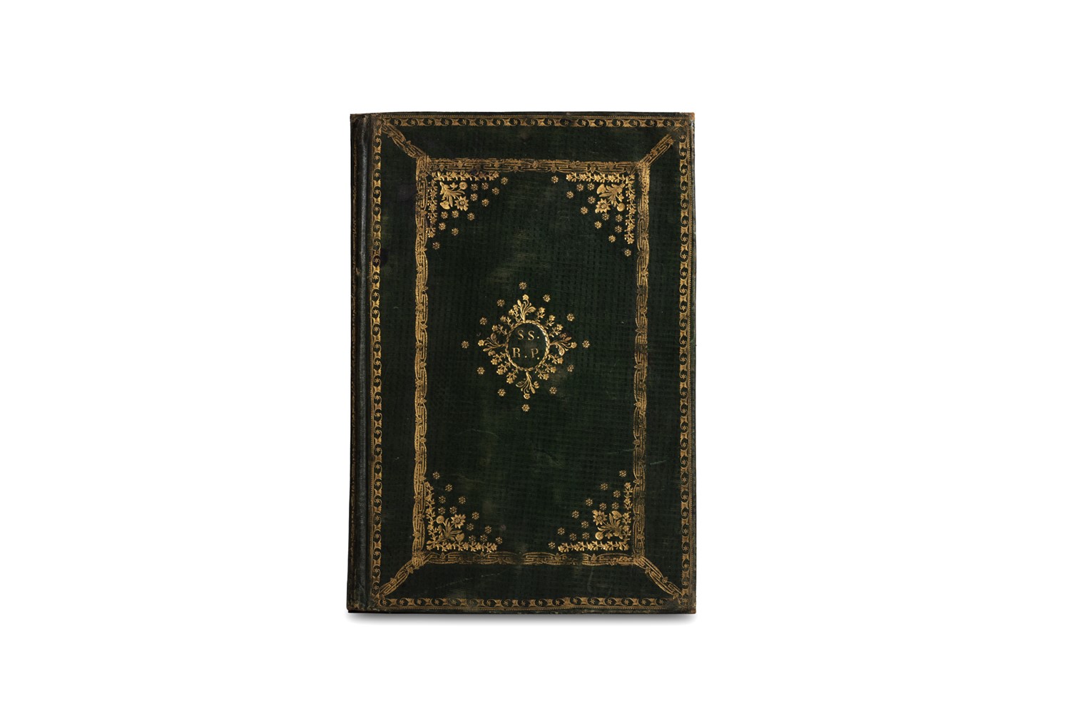 Napoli, Tipografia Simoniana, 1822. In 2°. Vignetta figurata calcografica al frontespizio, testo inquadrato da cornice xilografica, legatura napoletana coeva in marocchino verde, ai piatti due cornici di filetti e rotelle, al centro del campo ovale colle iniziali SS.R.P., un poco sciupata.