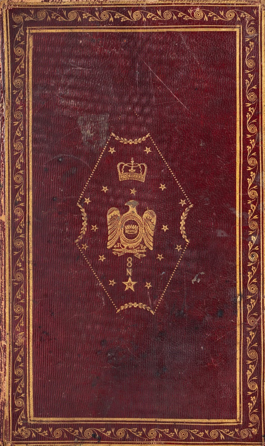 In 8°. Milano, Reale stamperia, 1808. Fascicoli lenti, elegante legatura coeva in marocchino rosso dalla grana lunga, ai piatti aquila imperiale con le insegne napoleoniche, dorso con decorazioni in oro e titolo su tassello verde, tagli dorati, leggeri difetti al dorso con mancanza alla cuffia inferiore.