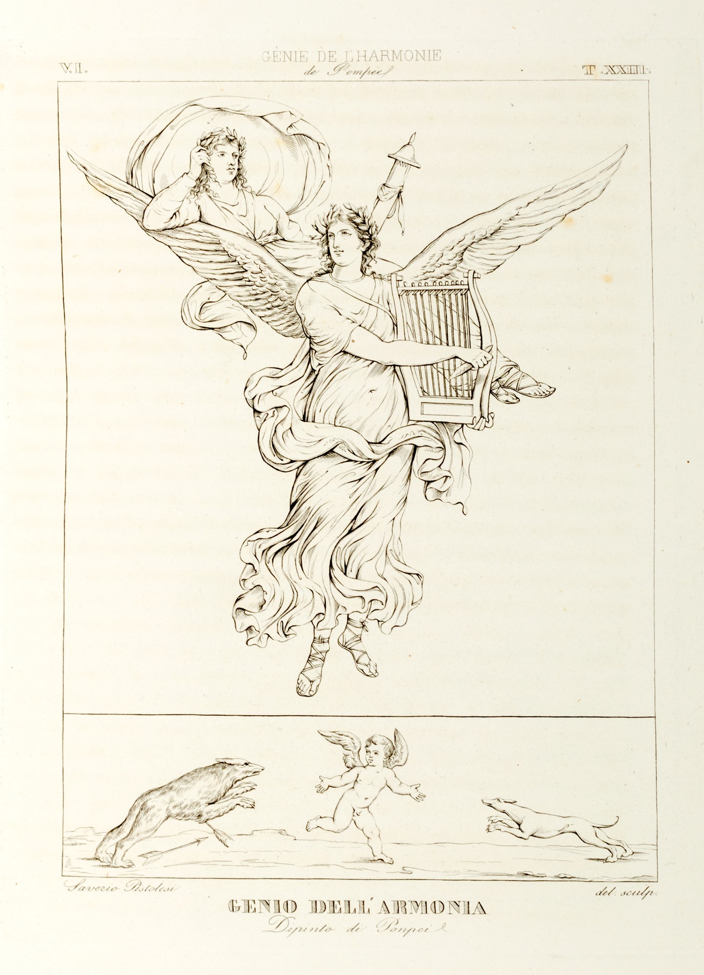 Genova, co' tipi del R. I. de' sordomuti, 1851-1854. In 2°. 2 voll (di 3). Con 198 carte di tavole numerate, ciascun volume con un secondo frontespizio in carta lucida con data corretta a mano in 1859, fioriture sparse, legatura in mezzo marocchino verde, con autore e titolo impressi in oro al dorso a 4 nervi con fregi dorati, qualche abrasione e leggera spellatura, aloni ai piatti.