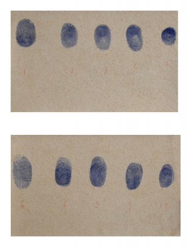 PIERO MANZONI (1933 - 1963) Impronte , 1961 c. Inchiostro su carta, cm. 30 x 20 BIBLIOGRAFIA: " Piero Manzoni, Catalogo Ragionato ", Freddy Battino e Luca Palazzoli, 1991, n. 194, fig. 194, p. 233 Piero Manzoni, Catalogo Generale, Celant , secondo volume, edizioni Skira, 2004, p. 515, n. 811 ESPOSIZIONI: " Il disegno nelle raccolte private modenesi ", Comune di Modena, Galleria Civica, 1993 Prov. Collezione Privata