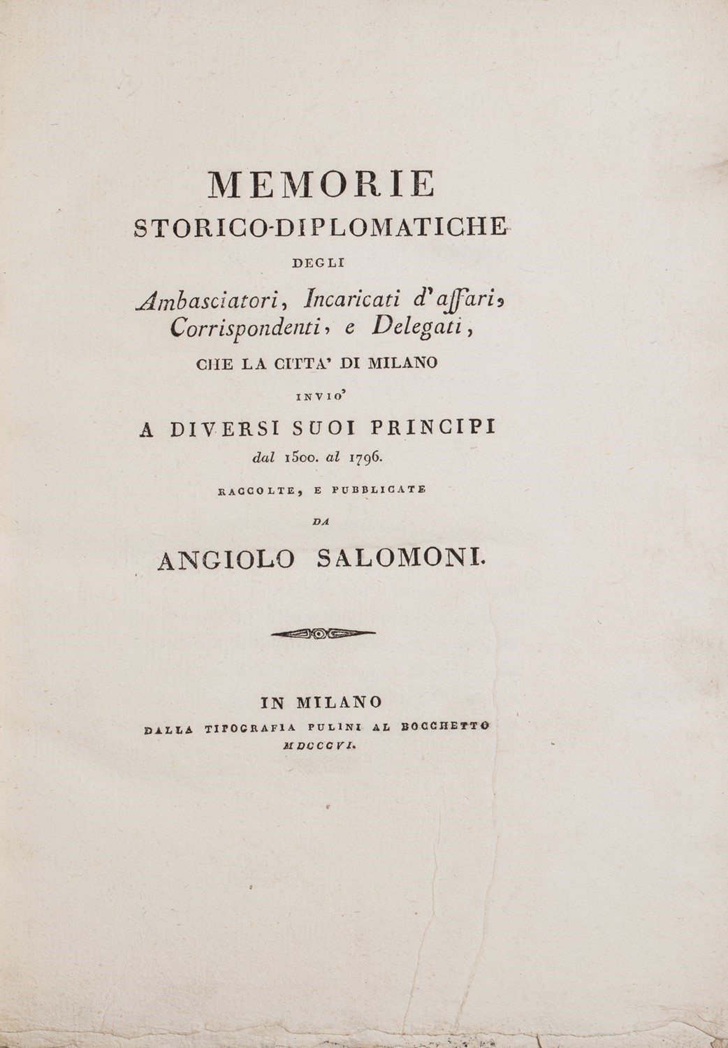 Salomoni, Angiolo - Memorie storico-diplomatiche degli Ambasciatori, Incaricati d'affari, Corrispondenti, e Delegati, che la città di Milano inviò a diversi suoi principi dal 1500 al 1796