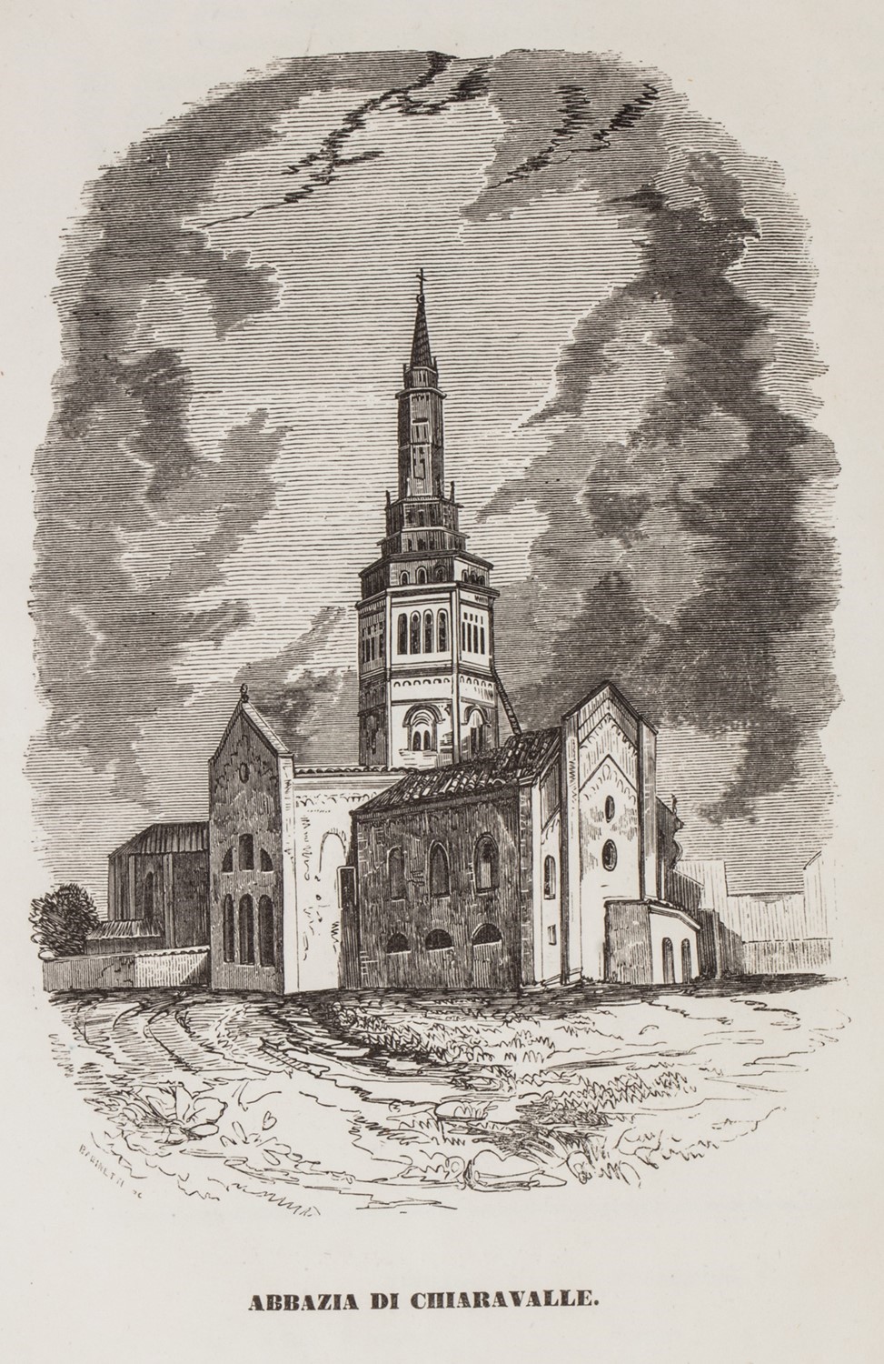 Milano, Giuditta Boniardi-Pogliani, 1841. In 8°. Diverse iscrizioni riprodotte nel testo. Legato con Dell’Abbazia di Chiaravalle in Lombardia. Milano, Giacomo Gnocchi, 1842. Incisione calcografica all’antiporta raffigurante l’abbazia, due tavole fuori testo a illustrare gli affreschi, trascrizioni di iscrizioni, legatura coeva in mezza pelle e cartone marmorizzato. Insieme nel lotto un altro esemplare della Chiesa di Sant’Eustorgio in Milano intonso, con la brossura editoriale, in parte strappata e restaurata al dorso.