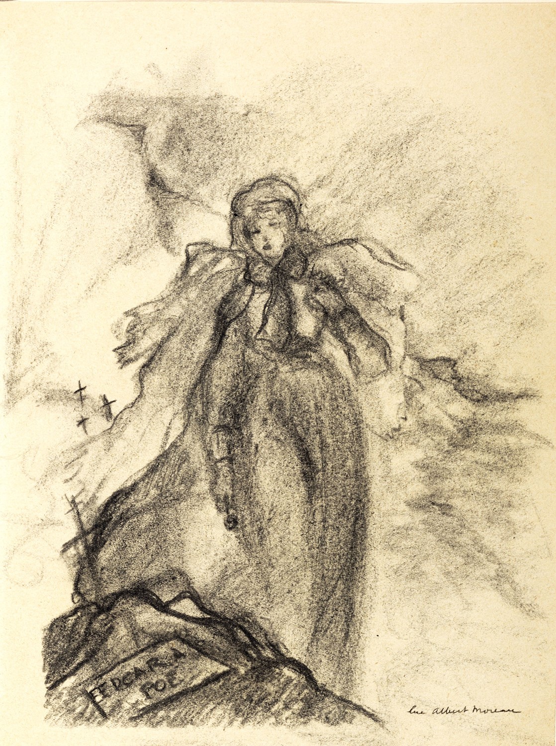 Parigi, Les Bibliophiles du Palais, 1938. In 4°. Fogli sciolti, con una introduzione di Francis Carco e le 37 litografie di Luc- Albert Moreau, inclusa l'antiporta con il ritratto di Mallarmé, in fine volume 5 disegni di Moreau, mm. 260 x 210, firmati dall'artista in basso a destra, copertina editoriale in cartoncino avorio con al piatto anteriore titolo in nero e fregio editoriale a colori, camicia e custodia in pelle marrone lievi difetti.