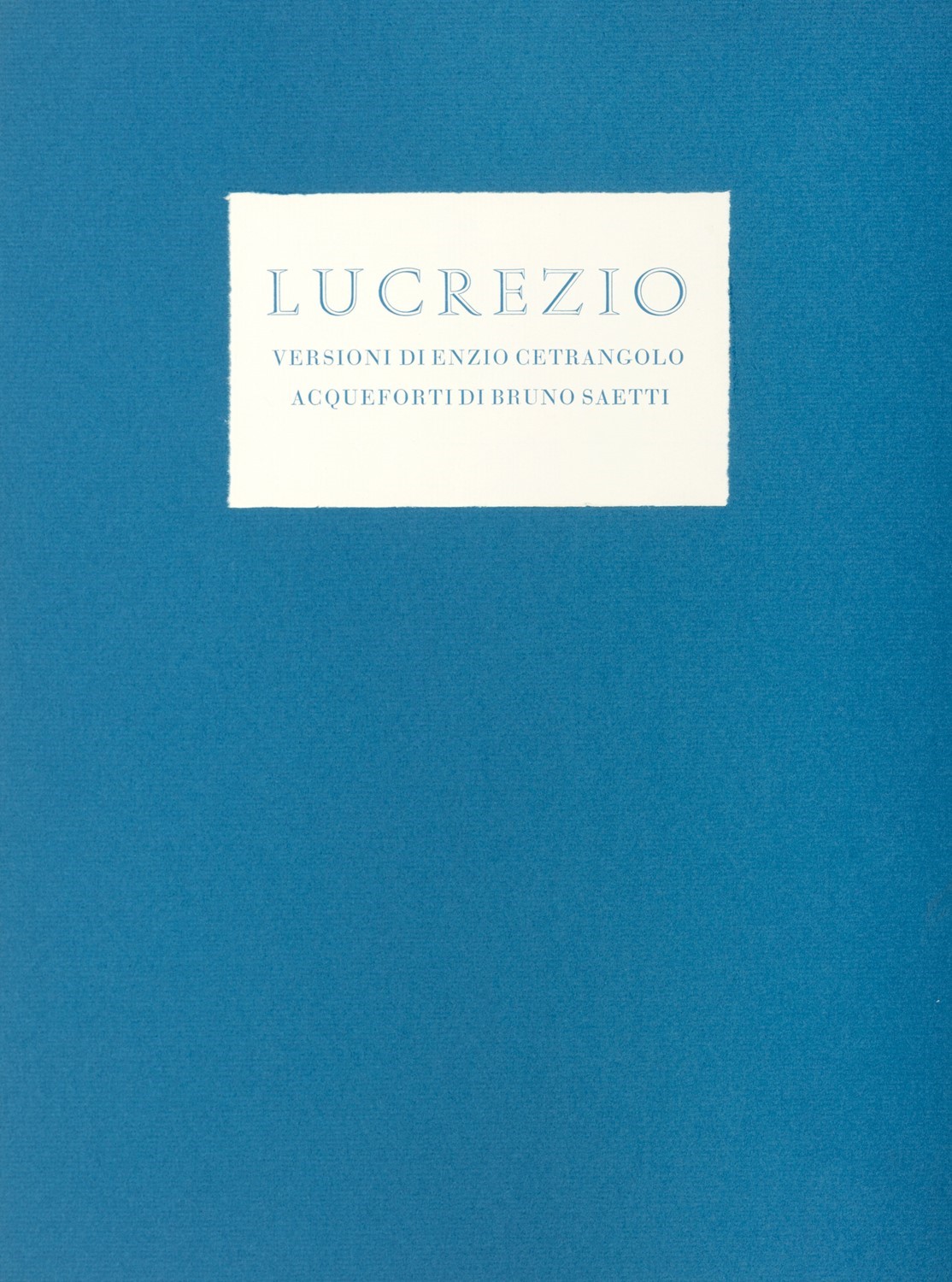 Verona, Franco Riva, 1968. In 2°. Con 2 acqueforti di Saetti, brossura entro cartellina e custodia in cartoncino blu, qualche lieve graffio alla custodia, lievi difetti. § Catullo, Gaio Valerio; Funi, Achille, Catullo Veronensis Ad Lesbiam, Verona, Franco Riva, 1965. In 2°. Con 2 acqueforti di Funi, brossura entro cartellina e custodia in cartoncino grigia, qualche leggera macchia, lievi difetti. § Zancanaro, Tono, Canzona di Bacco, Verona, Franco Riva, 1962.