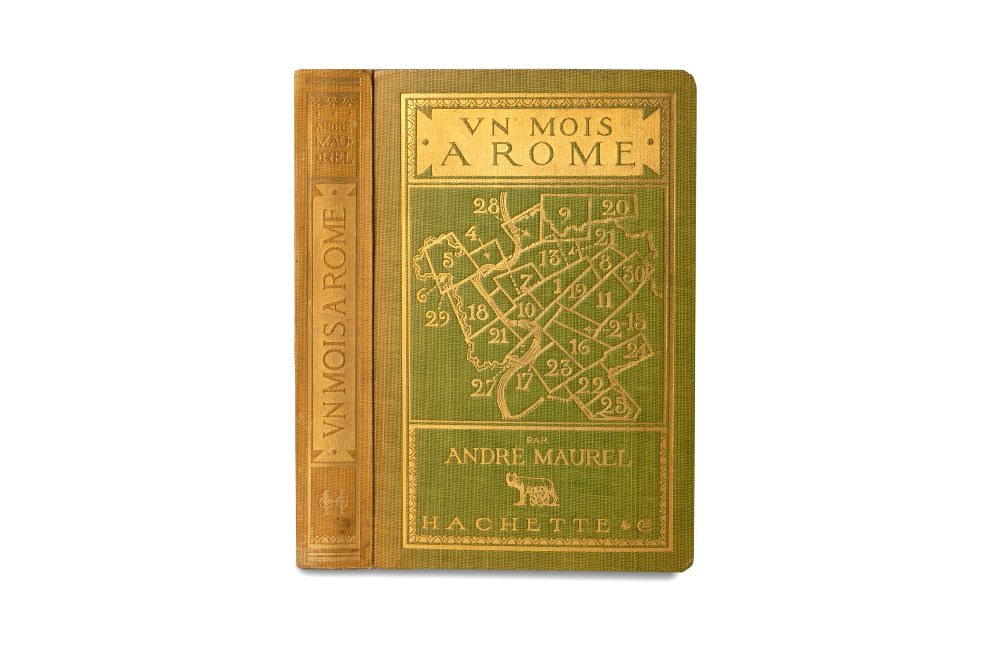 Parigi, Librairie Hachette et Cie, 1912. In 12°. Con 64 tavole e numerose carte topografiche nel testo, legatura editoriale in tela verde, titolo e mappa dei rioni romani impressi al piatto anteriore, autore e titolo impressi in oro al dorso, tagli gialli, leggera scoloritura al dorso § Artaud de Montor, Alexis-François, Voyage Dans Les Catacombes de Rome, Parigi, F. Schoell, 1810. In 8°. Rarissime fioriture, leggera brunitura marginale delle prime e ultime carte, legatura coeva in pelle marmorizzata, piatti inquadrati da cornice dorata, titolo impresso in oro entro tassello rosso, dorso riccamente decorato in oro, tagli dorati, lievi difetti.