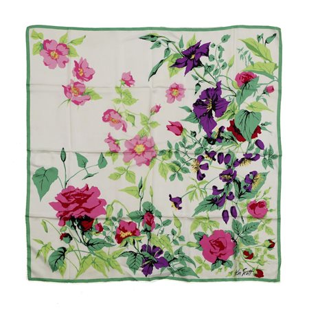 SCOTT KEN (1918 - 1991) Foulard in seta con stampa floreale. Seta. Cm 85,00 x 85,00.