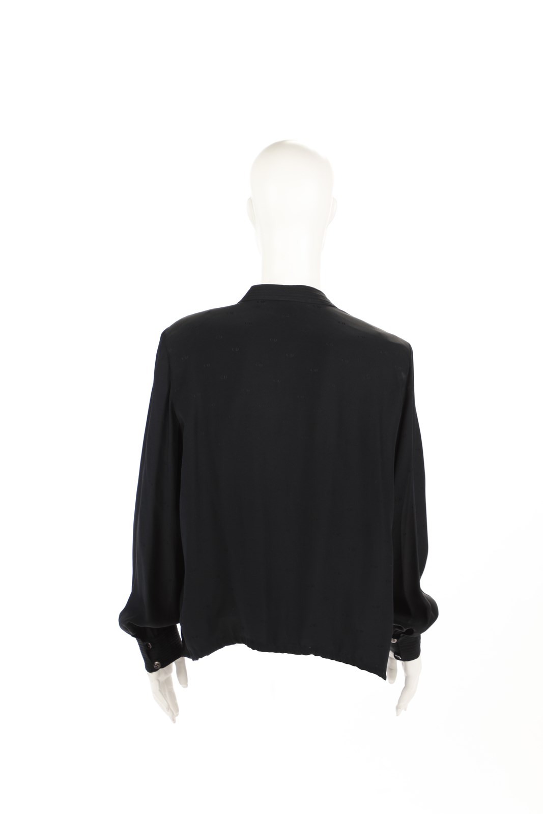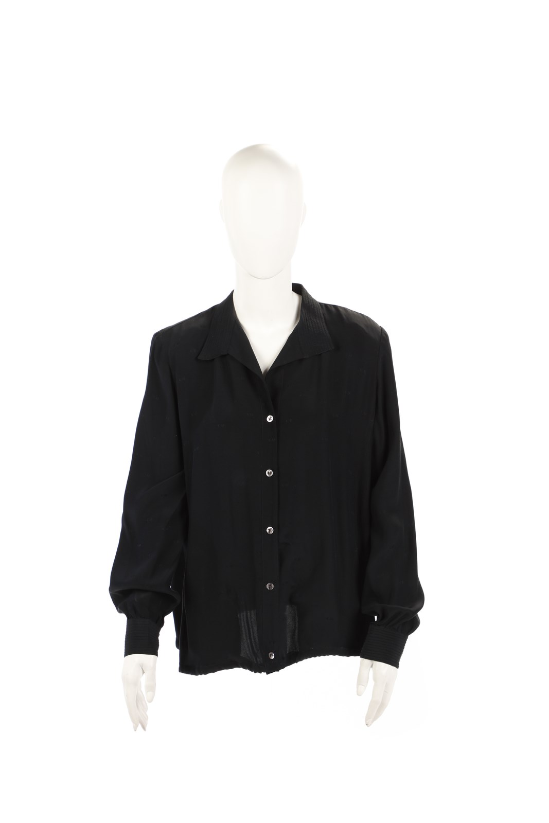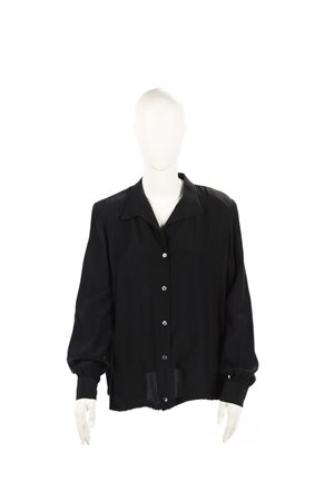 DIOR CHRISTIAN (1905 - 1957) - Camicia in seta nera , chiusura con bottoni e maniche a sbuffo.Fine Anni 80 inizi anni 90. Taglia 44IT.