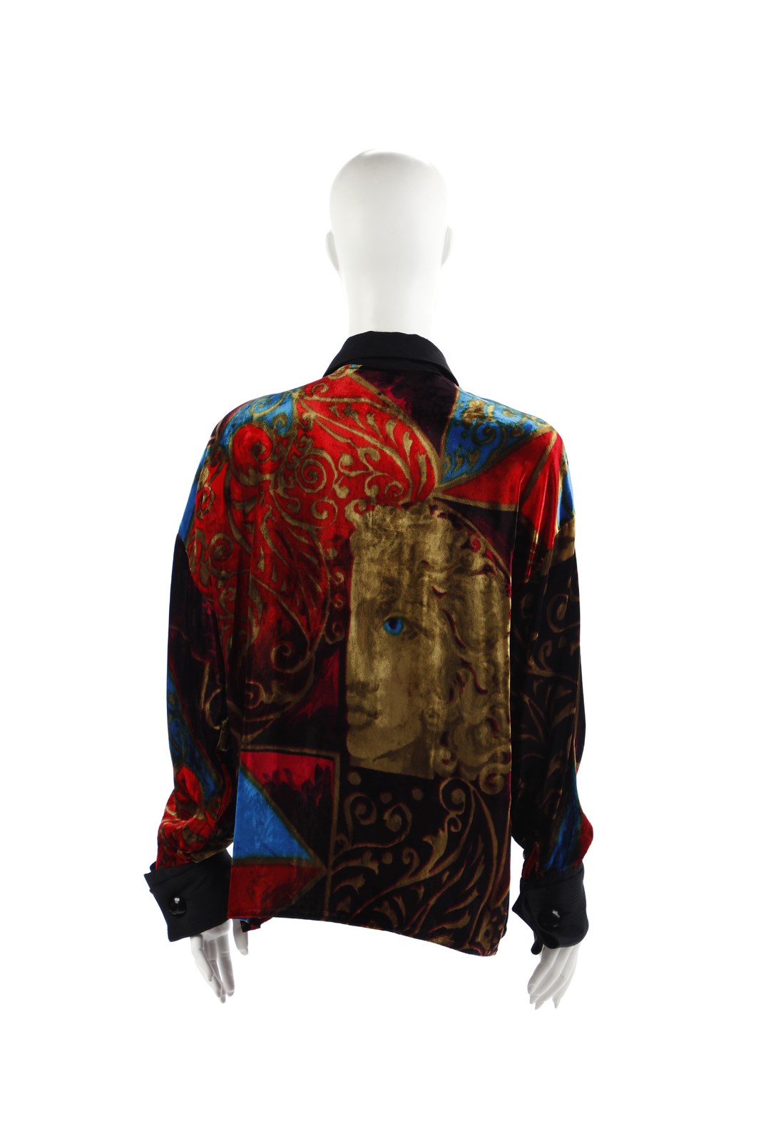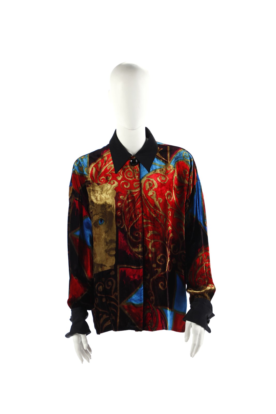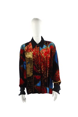 VERSACE GIANNI (1946 - 1997) - Blusa in velluto di seta con stampa iconica ispirazione neo greca e ramages.Limited edition.Taglia 42It.