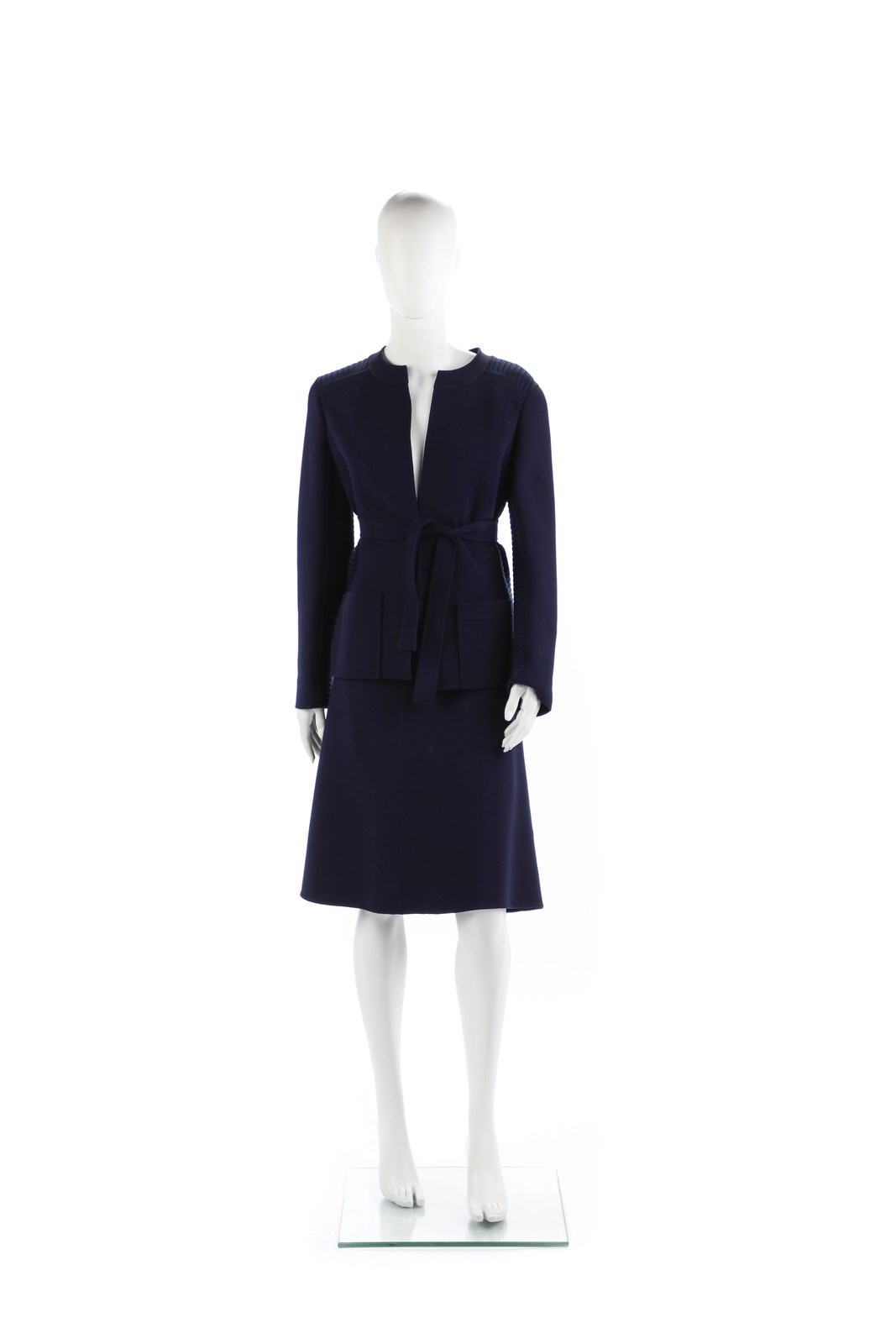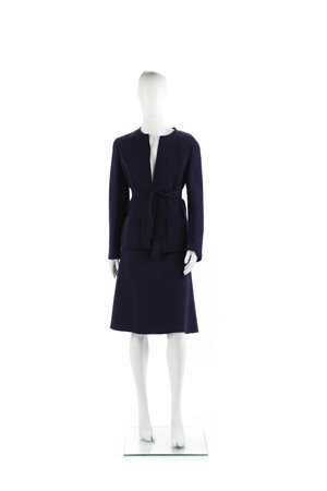 SCHON MILA - Gonna e giacca blu scuro con cintura. Taglia46IT. Made in Italy.