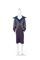 BIAGIOTTI LAURA - Abito lungo nei toni del blu, del grigio e del viola, ampio collo con bottoni e ampie maniche a sbuffo.Taglia 44. anni 80.
