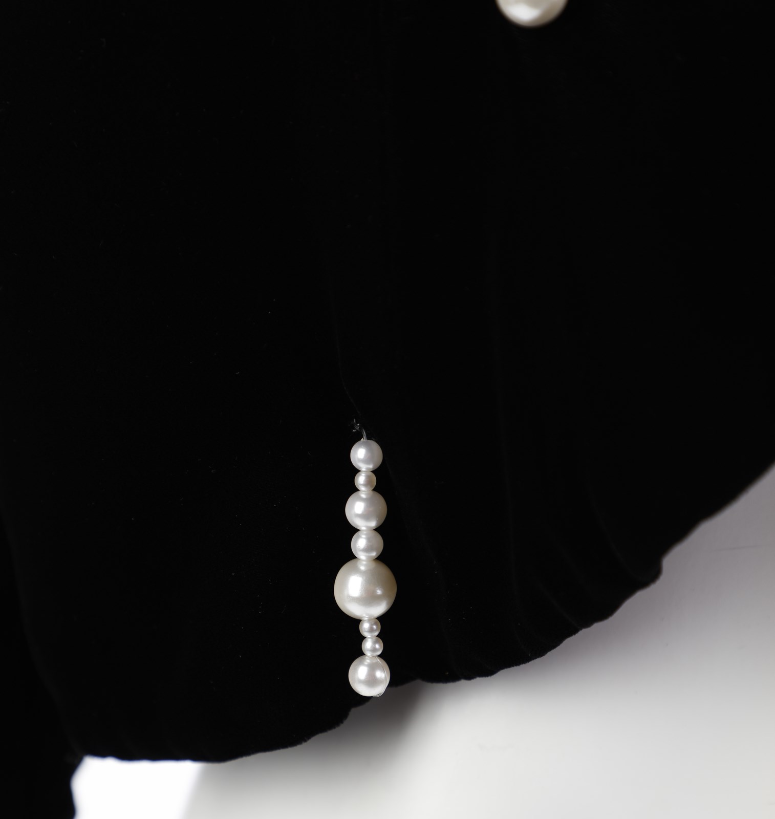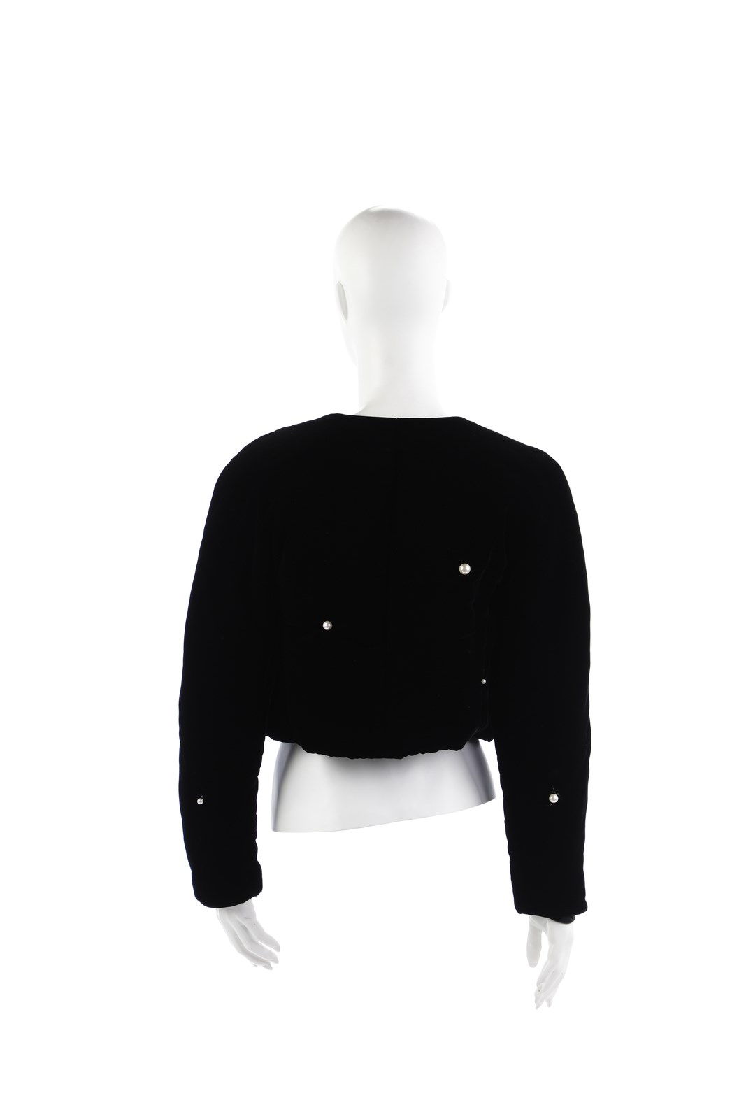 RUGGERI CINZIA - Bolerino in velluto nero con applicazioni di perle. Serie sospyroz. Certificato di provenienza Franco Jacassi.