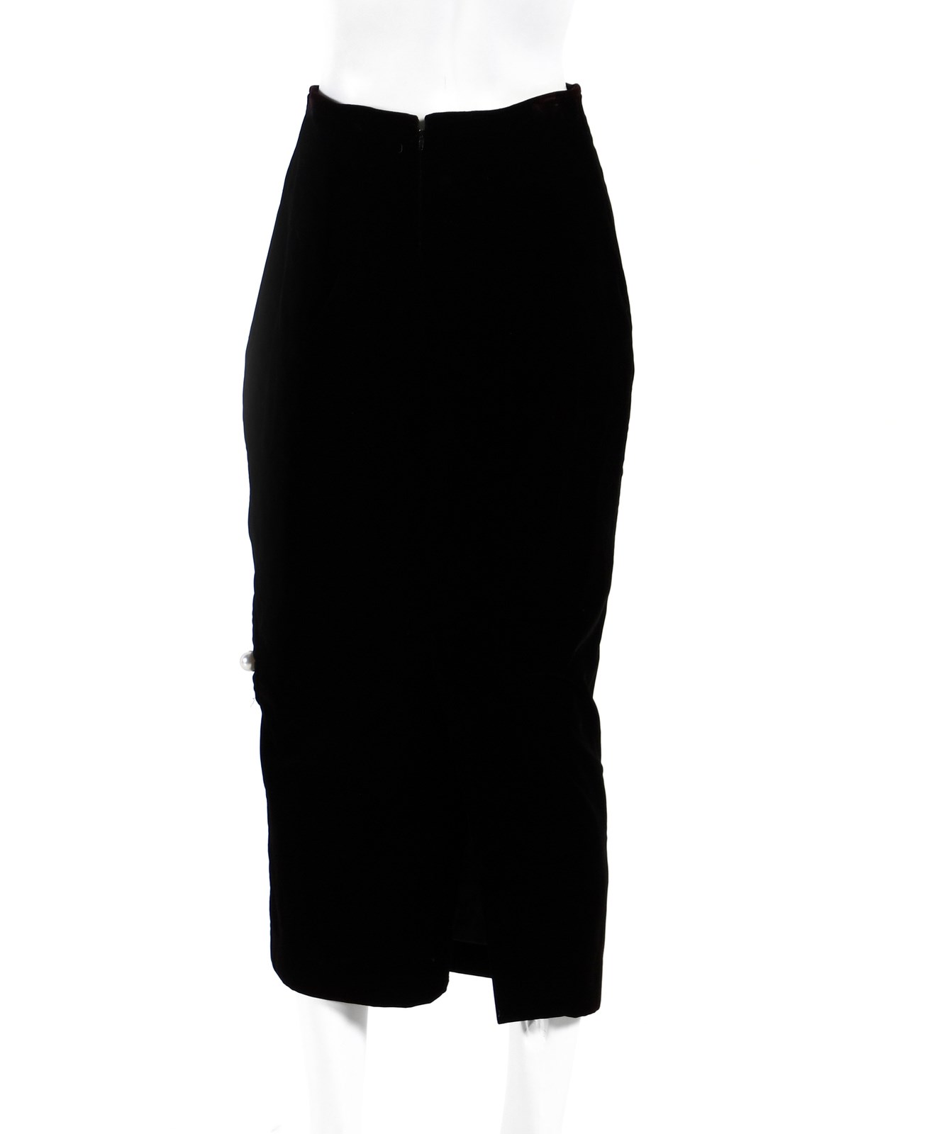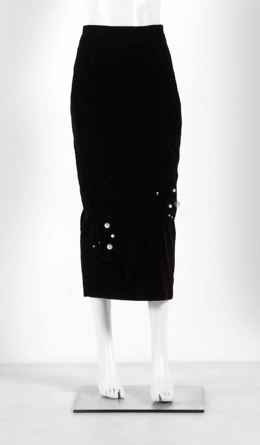 RUGGERI CINZIA - Serie Zeroz, Gonna in velluto nero con applicazione di perle. Certificato di provenienza Franco Jacassi.