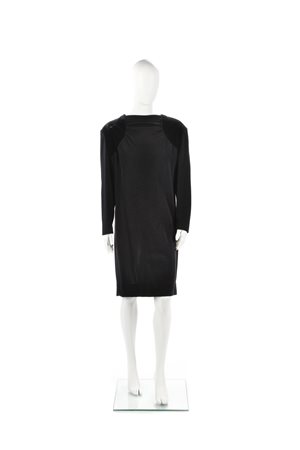 ABOLAFFIO VITTORIO - Abolaffio, Genova. Vestito longuette in lana nera ed inserti in velluto.