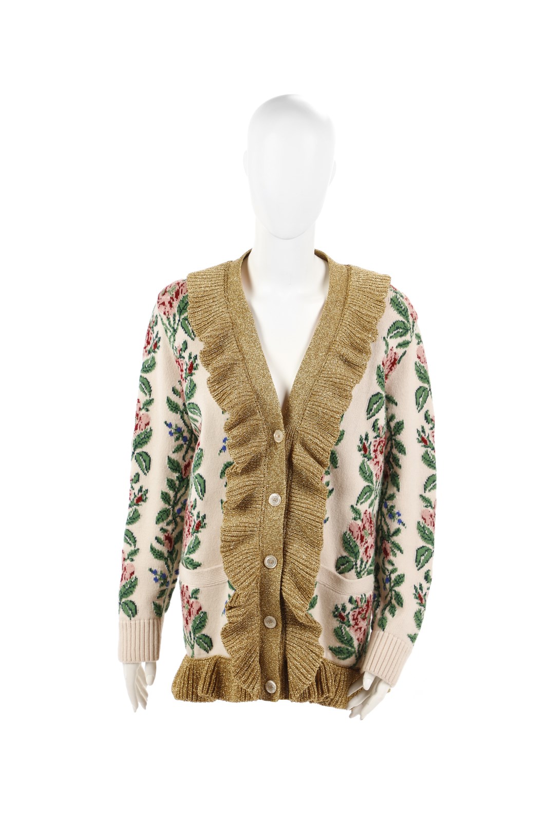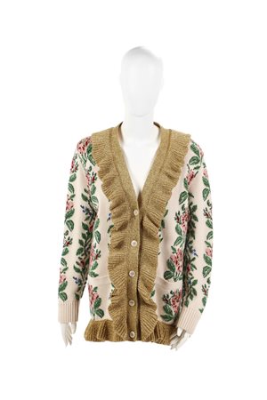 GUCCI - Cardigan fantasia a fiori in lana.Interno in seta stampata. Anni 2000.