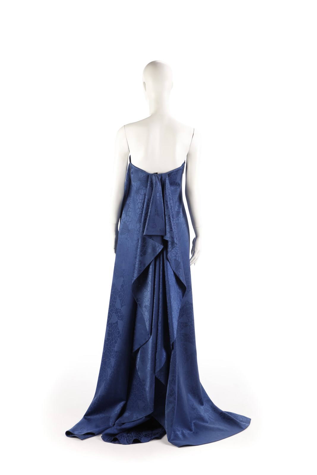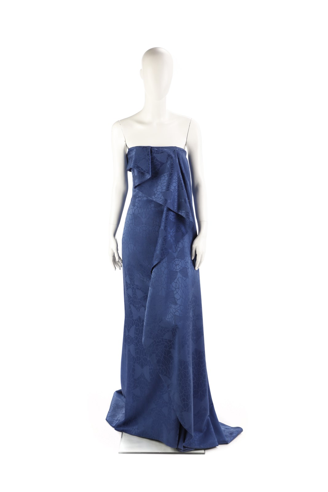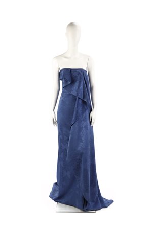 SCHON MILA Abito blu, scollato con drappeggio. Certificato di provenienza Franco Jacassi. Seta. .