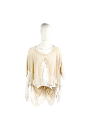 MARRAS ANTONIO - Coprispalle bianco con maniche, lavorazione in pizzo.