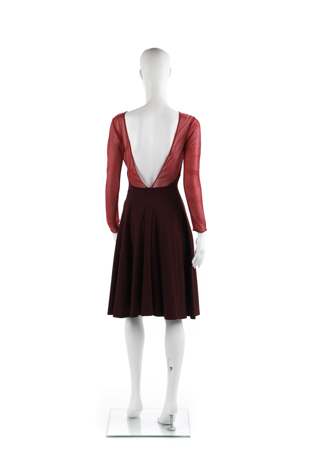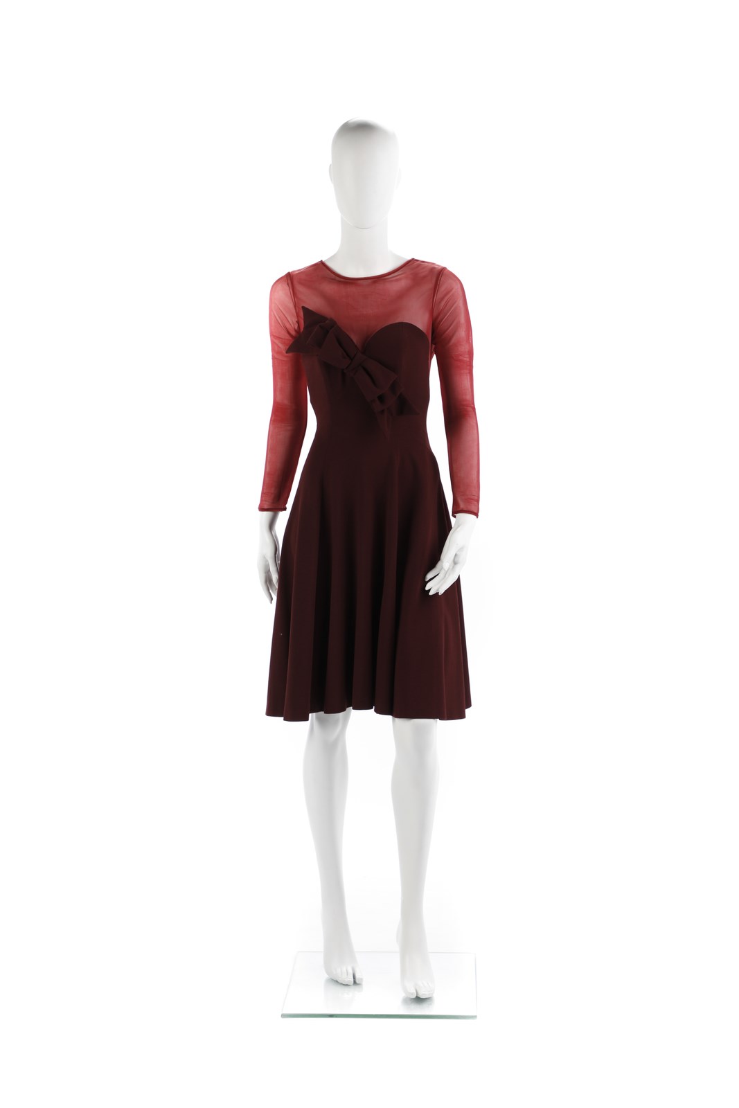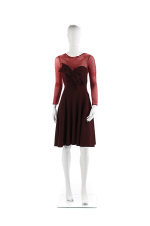 WESTWOOD VIVIENNE - Abito rosso in velluto con applicazione di fiocco sul fronte e pizzo.