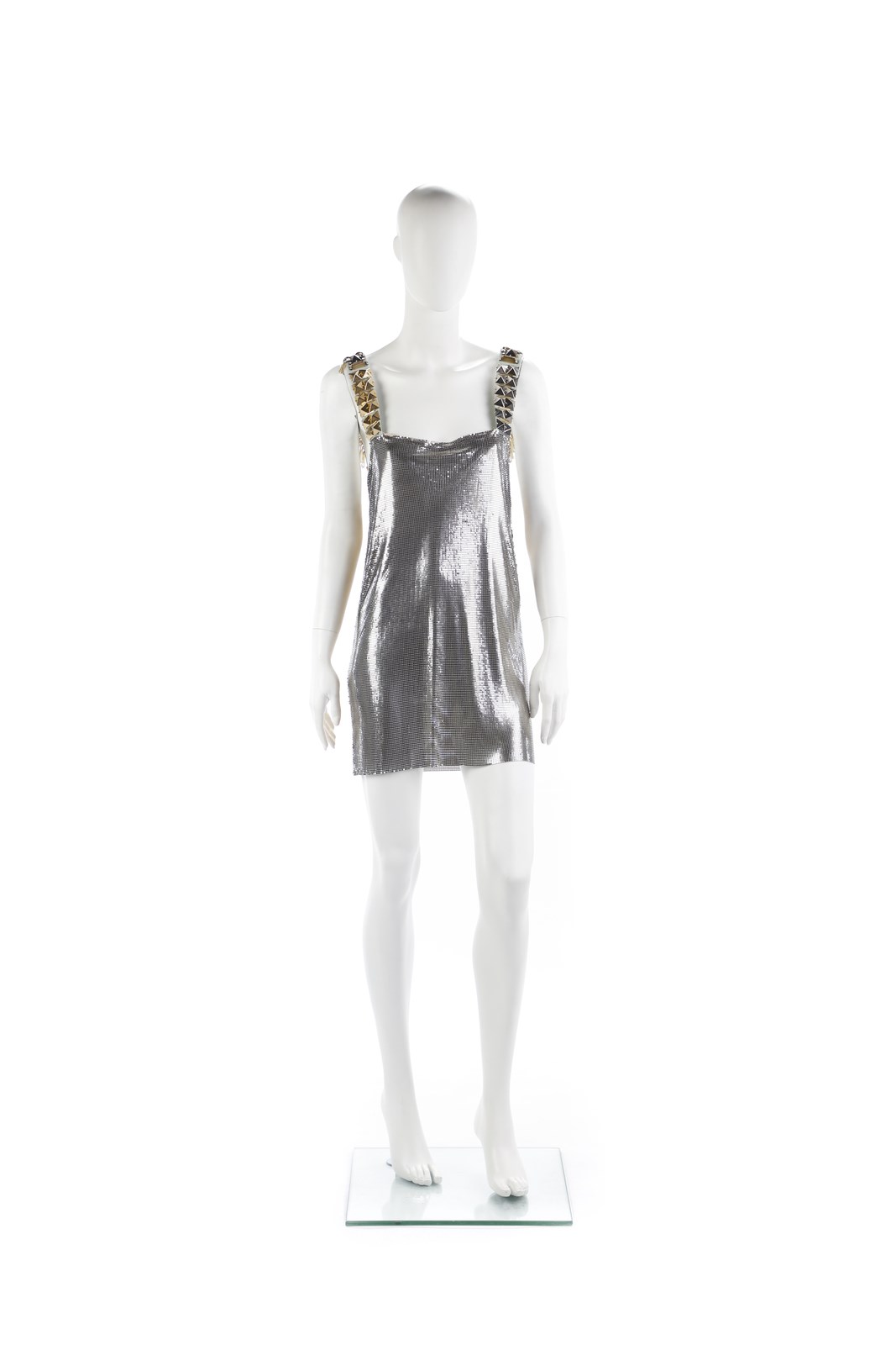PUGLISI FAUSTO Abito in maglia metallico, senza maniche con spalline con borchie. Acetato e metallo.. .