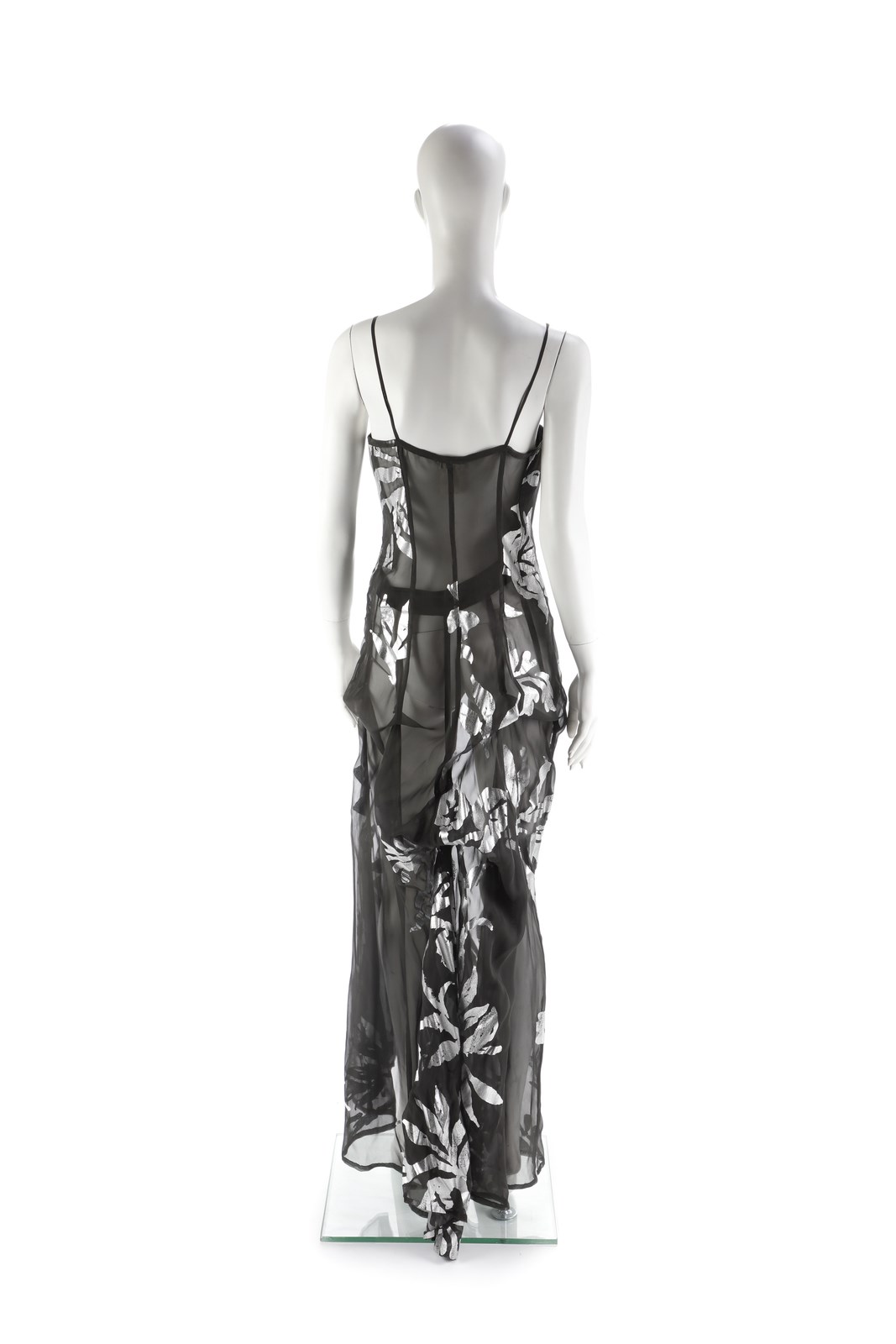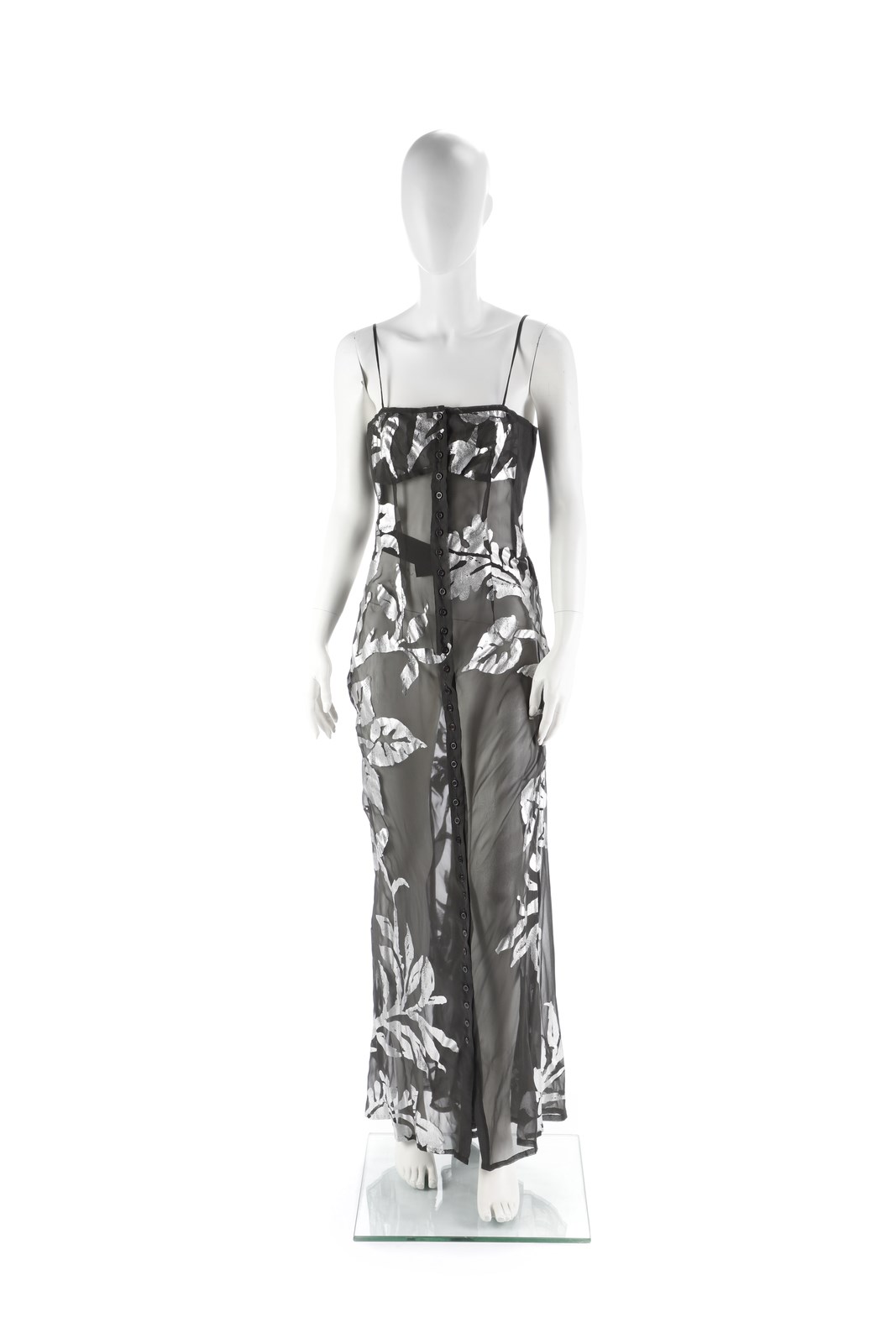 VAN NOTEN DRIES Abito lungo senza maniche nei toni del grigio e dell'argento. Taglia 40IT. Made in Belgio. Anni 2000. Seta. .